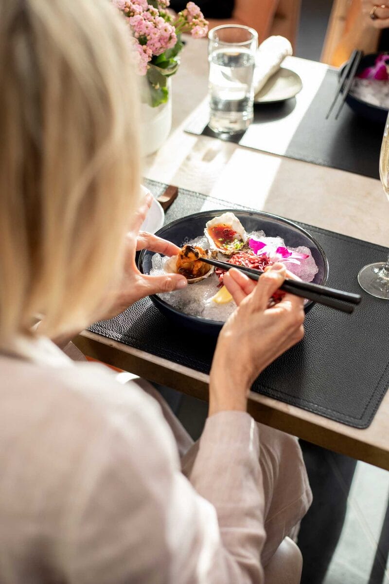 If you’re craving something hearty, the Faroe Islands Salmon Mignon—perfectly seared and served with seasonal accompaniments—is always a hit. For something more social, grab a round of sushi rolls at half price during happy hour, or go all in on an oyster bar experience, where you can sip crisp white wine while indulging in the freshest shucked-to-order selections. Shorebird is the perfect final stop on El Paseo—because every girls’ day deserves a “girl dinner” moment.
