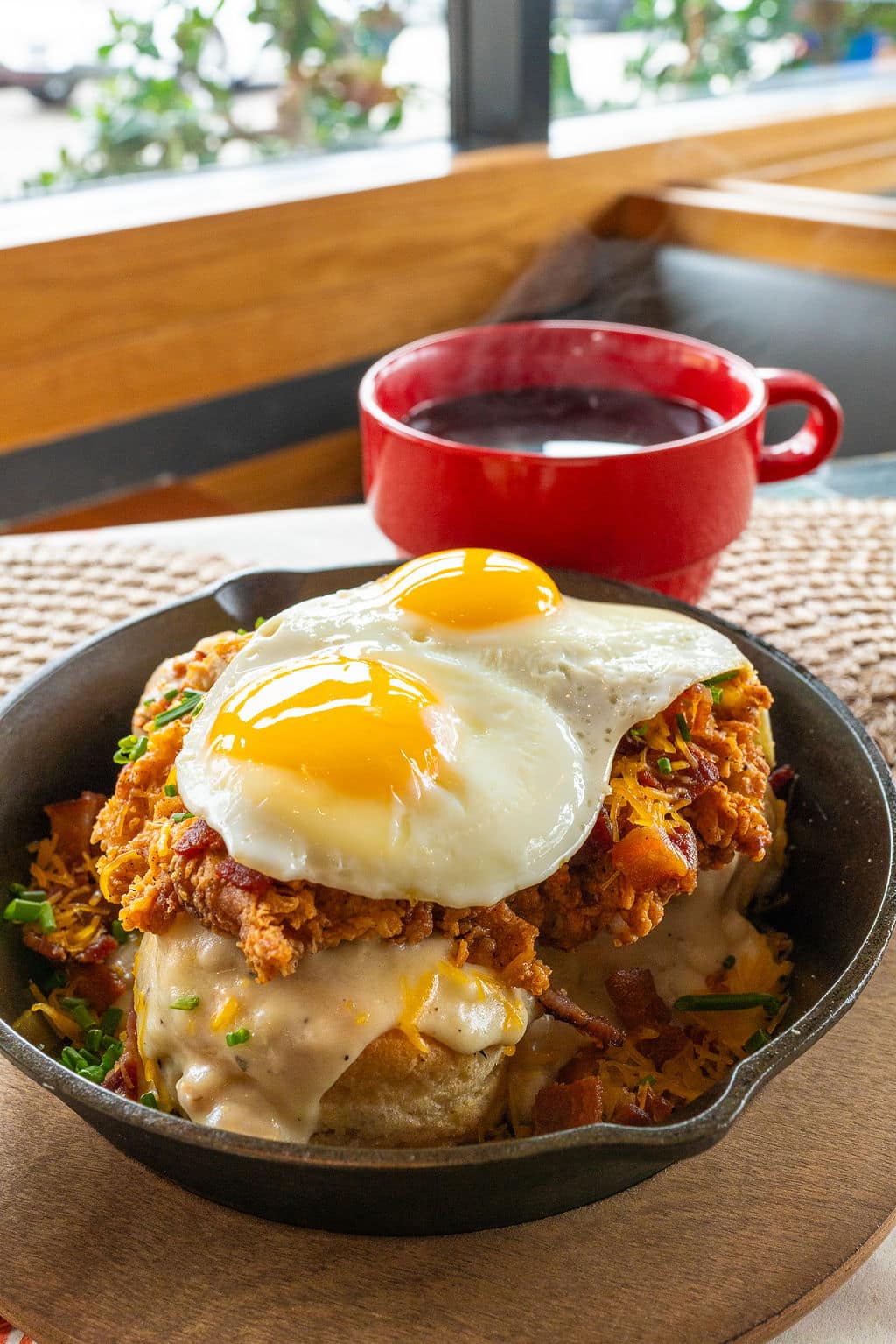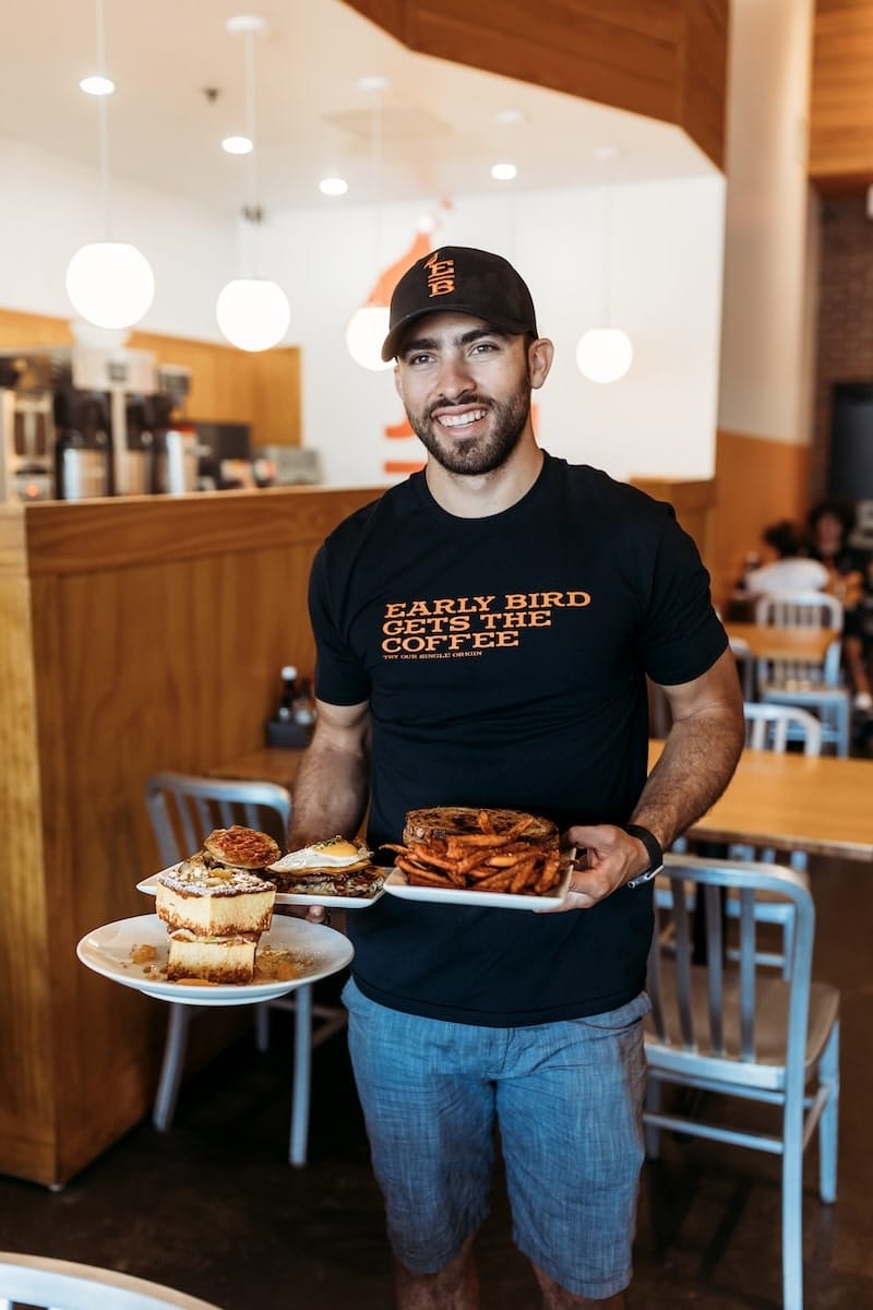 Chef-driven and locally sourced, Early Bird is the kind of brunch spot that feels both elevated and effortlessly casual. Everything here is made from scratch, including the mouthwatering pork belly Benedict stacked with house-cured pork belly, spicy sriracha hollandaise, and pickles on a toasted English muffin. Can’t decide? Go for the Benny Sampler, featuring the pork belly, traditional, and flavor-packed Rancho Benedict, topped with carnitas and tomatillo hollandaise. With ingredients sourced from sustainable farms and flavors that go big, Early Bird delivers hometown hospitality with serious brunch cred.