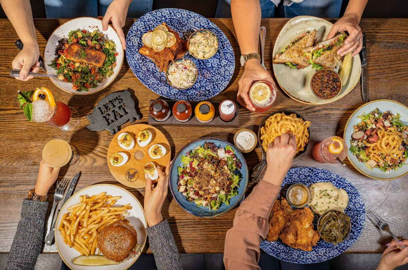If you’re in the mood for a more casual dinner and a little Southern hospitality, Gus’s Barbecue in the Claremont Packing House delivers in spades. This longtime favorite serves up a mouthwatering lineup of slow-smoked meats, from jalapeño cheddar sausages to tender Carolina pulled pork. The Smokehouse Chili is a sleeper hit—loaded with brisket, black beans and just the right amount of heat. Pair it with a cold beer or a whiskey flight, and you’ve got yourself a proper feast. With its warm, wood-accented dining room and Route 66 roots, Gus’s brings a hearty slice of the South to SoCal.