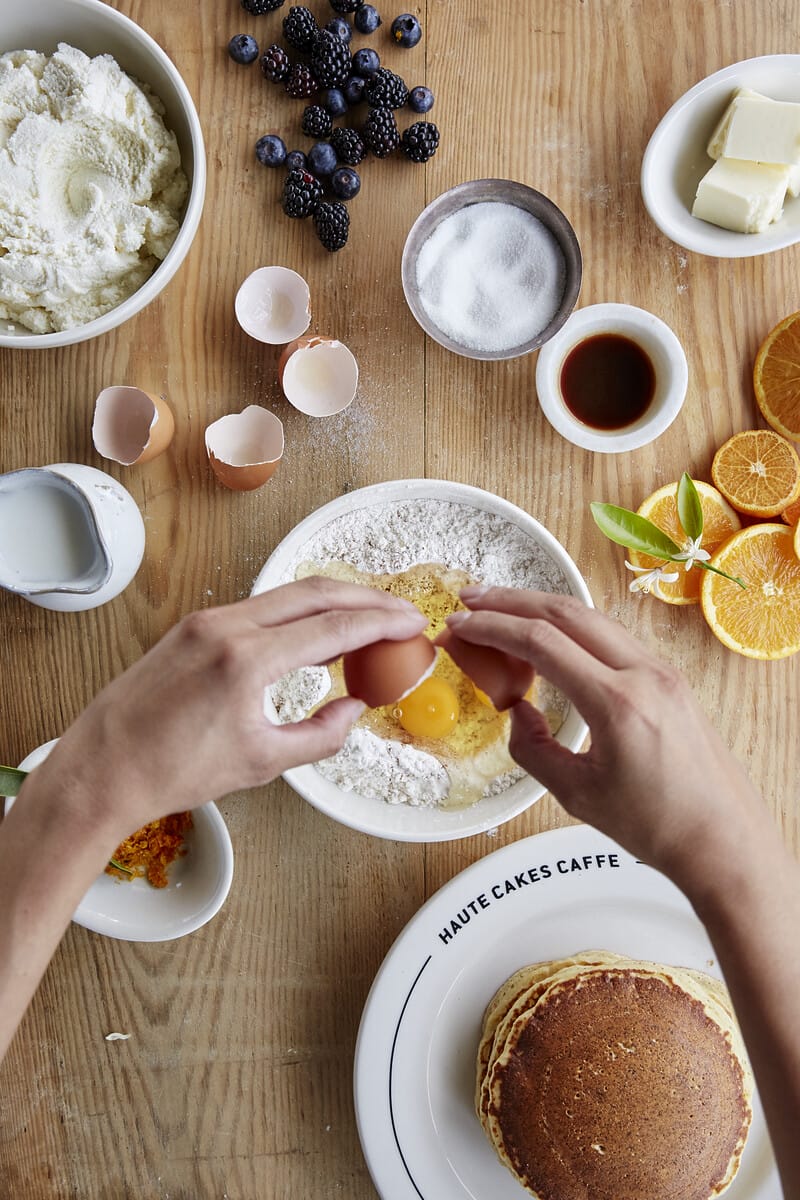 Haute Cakes Caffe is a family affair—Paul and Tania’s Daughters, Olivia and Sofie, are also involved in the day-to-day. Olivia makes some of the custom cakes on hand and Sofie recently graduated from culinary school in New York. Future locations of Haute Cakes could be a possibility thanks to the sisters’ involvement and love for the family business. Orange Ricotta Pancakes