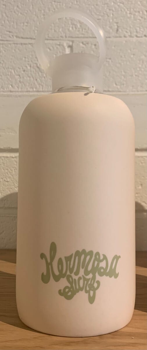 “Being sustainable is our style; we love staying hydrated and drinking out of glass, and the cream and green color combo on this bottle compliments our palette seen throughout the shop.”