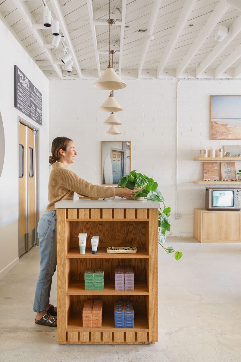 Nestled in the seaside neighborhood of Bird Rock, Hermosa Surf captures the laid-back lifestyle of San Diego. Prior to the shop’s conception, owners (and brothers) Attila Betyar and Benny Walter dreamed of a space where surfing, art, design and food could effortlessly intersect. After eight years of dreaming the dream, the duo finally brought their vision to life with the help of Betyar’s “long-time better half,” Katie Gebhardt of Solstice Interiors. Today, their new surf and smoothie sanctuary sits just blocks from the beach on La Jolla Blvd. Here’s what you’ll find within the walls of this swell little space.