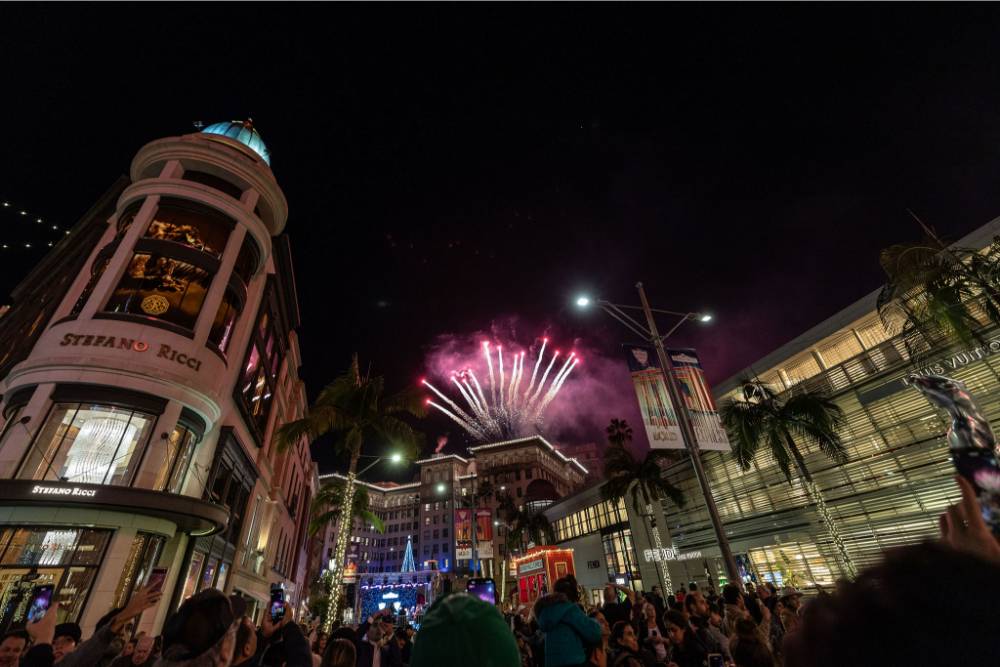 But the magic doesn’t stop there. Beverly Drive, Cañon Drive and Wilshire Boulevard are wrapped in twinkling lights too. Two Rodeo Drive transforms into a European-style dreamscape with cobblestone paths, arched lights and festive décor that sparkles at every turn.