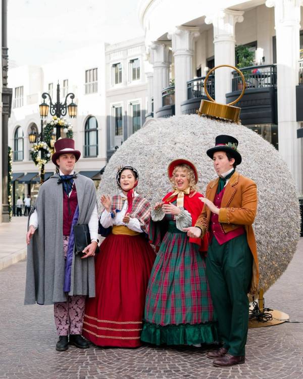 At Beverly Cañon Gardens, Glowing Gardens steals the spotlight with radiant holiday lights, an arched walk-through Christmas tree and oversized ornaments that illuminate the plaza. It’s the perfect spot for a cozy evening stroll after dinner or a cup of cocoa.