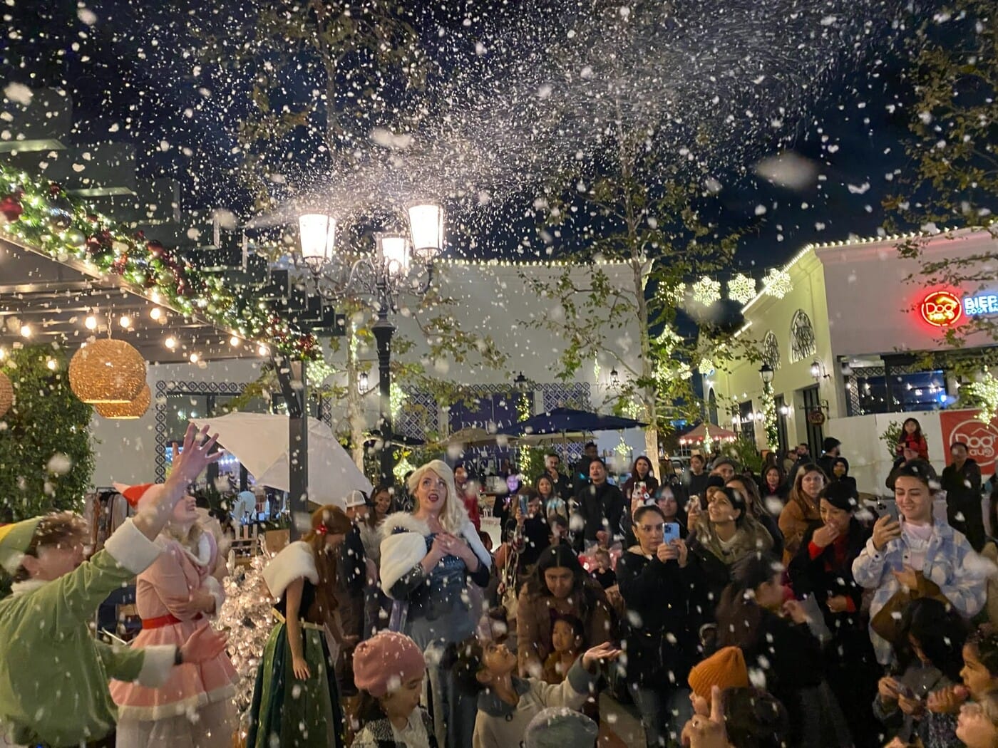 Each Saturday and select Sundays, Bella Terra’s Magic Snow Fall Shows bring snowflakes to Southern California, with appearances by holiday characters like the Grinch, Elsa and Anna, creating perfect winter moments from 5 and 6 p.m. Classic carolers also roam the grounds, filling every corner with Christmas tunes that add warmth and cheer. And for a cozy treat, visitors can grab a bite or brew from Bella Terra’s array of restaurants, which include King’s Fish House, Silverlake Ramen, Fogo De Chão (new!) and Flecha by Mark Wahlberg.