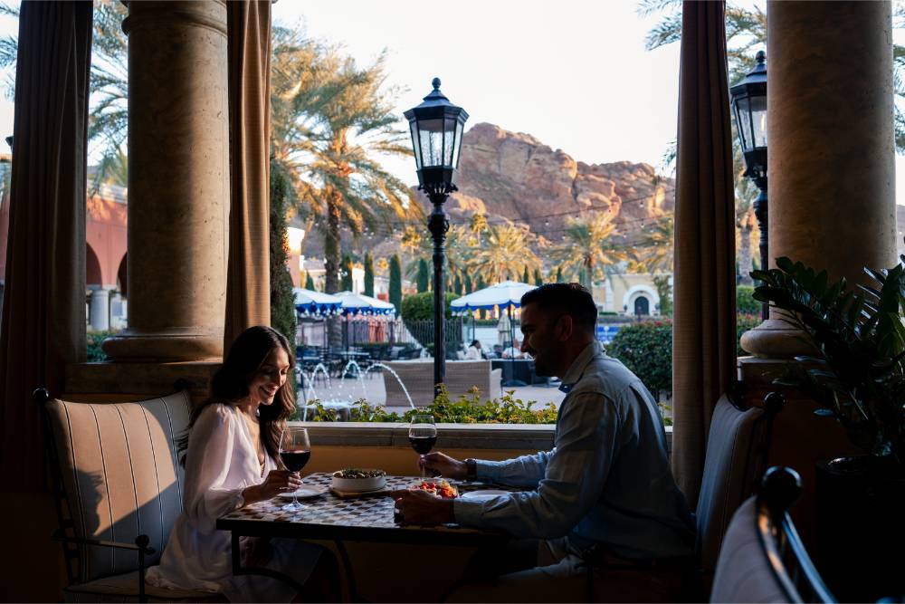 Morning light spills across the palm-lined terrace as you roll out your yoga mat, breath syncing with the desert breeze. At the resort’s yoga studio and fitness facilities, wellness and movement greet you among cactus silhouettes and open skies. Stop by Crave Café for a rich espresso and a flaky pastry. Its outdoor patio features a fire-lit patio as winter cools the air. For the adventurous, a morning hike up Camelback or Cholla Trail lies just outside the resort’s embrace.