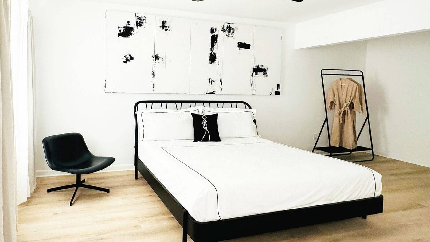 Embrace the avant-garde at Blackhaus, a cutting-edge boutique hotel in Palm Springs that redefines luxury and style. Situated in the Uptown Design District, this eclectic retreat boasts an edgy aesthetic, bold artwork and curated design elements that challenge convention and inspire creativity. Blackhaus reads more like a homestead than a hotel. It features 16 rooms, 20 beds and 20 bathrooms with room for over 40 people. You can reserve a la carte depending on your needs or do a partial, half or full buyout of the entire property. Amenities include a pool, bocce ball court, outdoor bar and fire pit, and plenty of places to lounge.