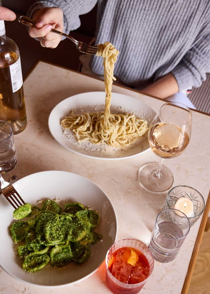 Cento Raw Bar is a seafood lover’s daydream brought to life in West Adams. Known for chef Avner Levi’s handmade pastas, Cento has expanded into the world of pristine oysters, seafood towers and crudos. The sleek interior features soft pastels, curved banquettes and a bar lined with shimmering shellfish on ice. Expect playful yet elegant plates like caviar sliders, scallop crudo and housemade pasta tossed with uni. With an atmosphere that manages to feel both relaxed and refined, Cento Raw Bar is a place for lingering lunches, date nights and everything in between.