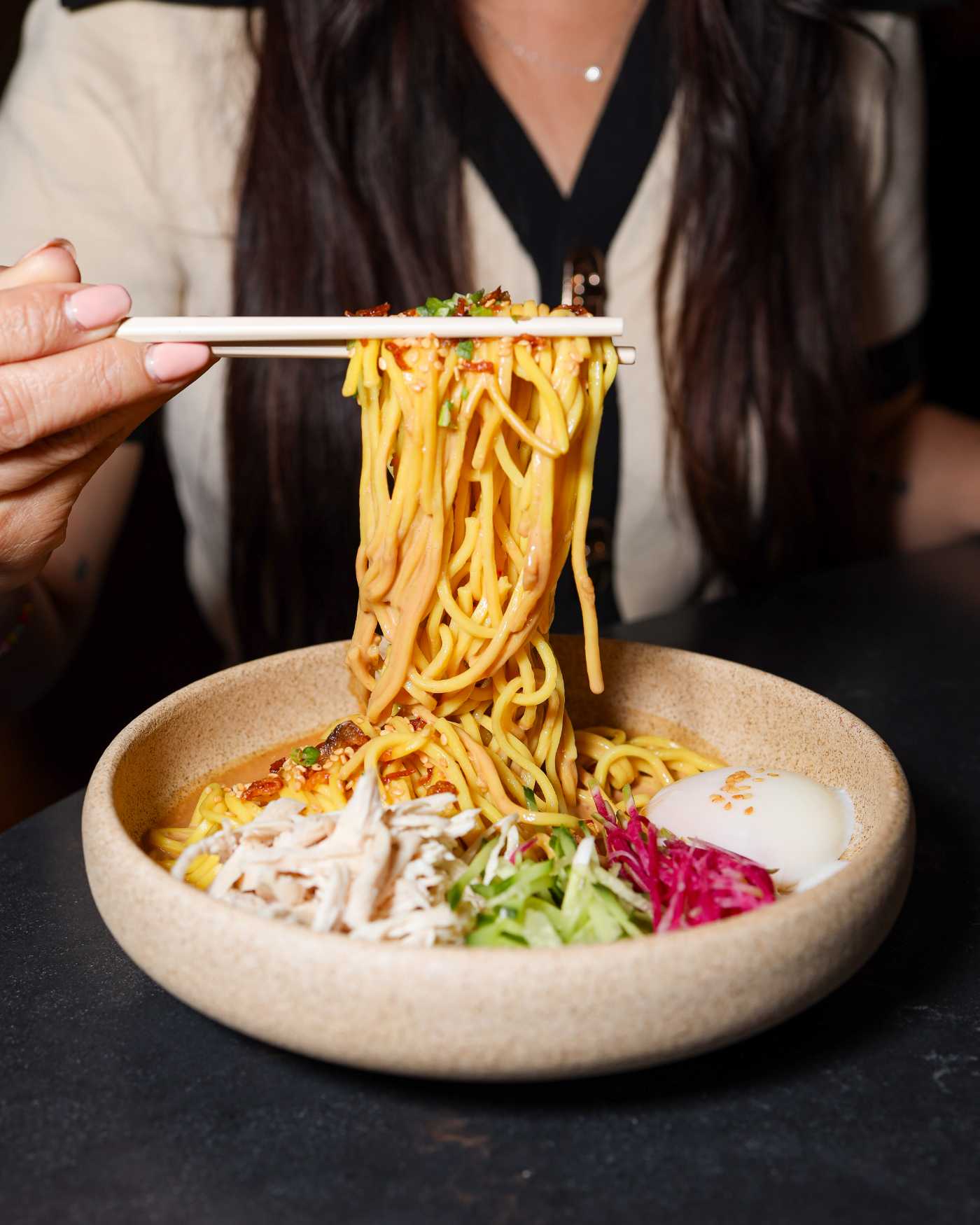 Men & Beasts reimagines the Chinese tea lounge as a vibrant, plant-based dining experience. The Echo Park newcomer offers a menu rooted in tradition yet free of animal products, featuring salt-and-pepper “wings,” zhajiangmian and kung pao tofu alongside an extensive tea program. Each tea is served with ceremony, encouraging you to slow down and savor. The warm, modern space, once home to Cosa Buona, welcomes guests with a mix of rich woods, soft lighting and attentive hospitality. Men & Beasts is a gathering place where familiar flavors meet conscious cooking, proving that comfort food doesn’t need to compromise.