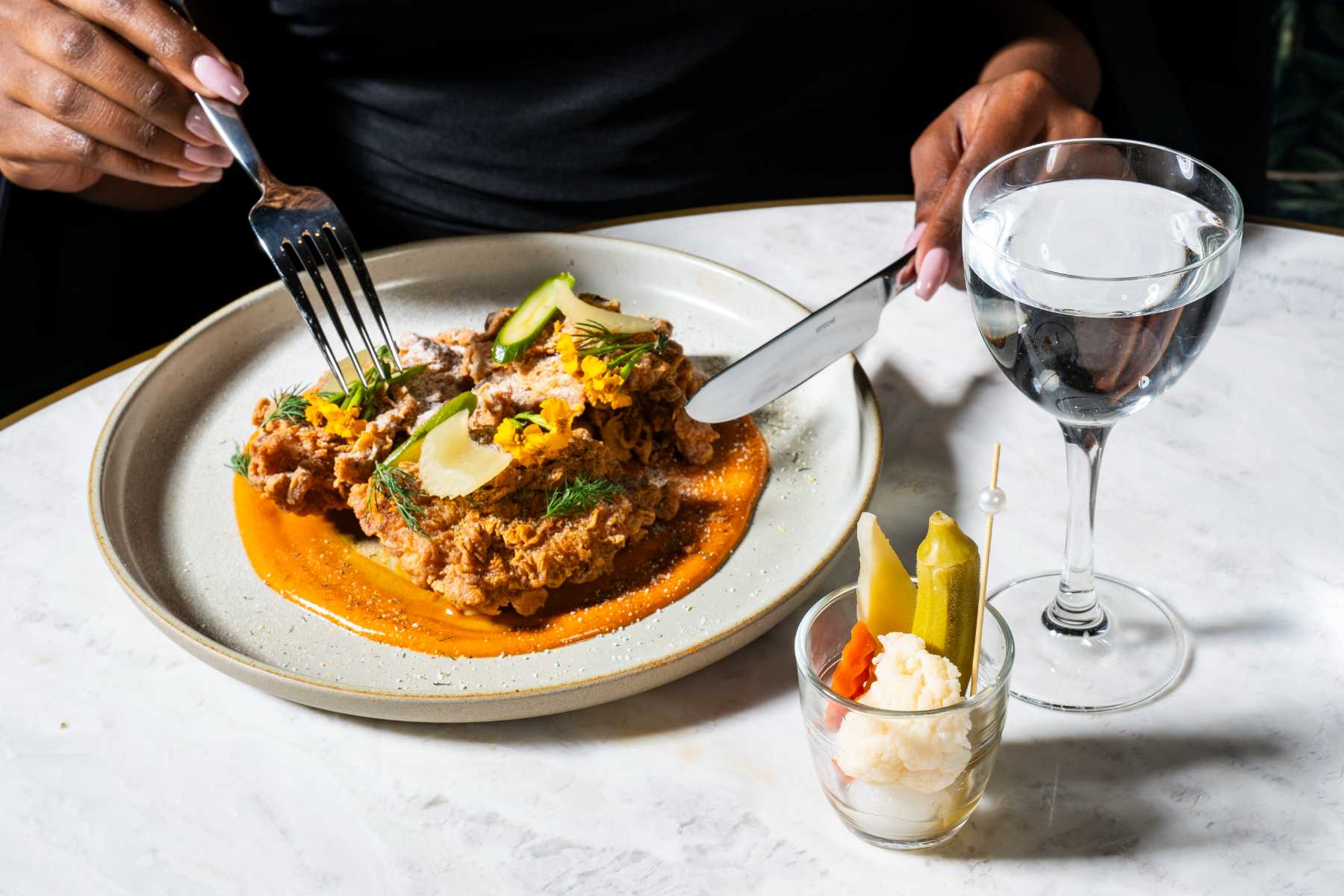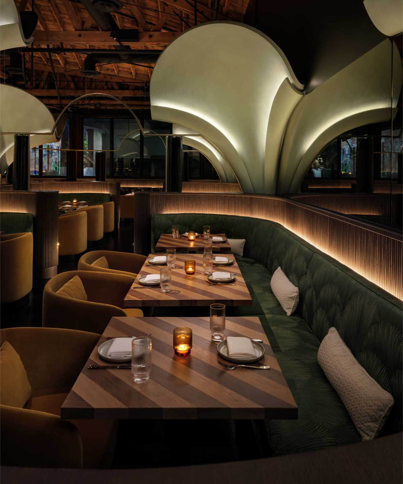 Dinner in Fairfax has never looked or tasted this bold, thanks to an Afro-Caribbean concept that turns fine dining into a full-on vibe. Founded by Sam Jordan and led by chef Adrian Forte, Lucia marries jerk-spiced tomahawk steaks, coconut-fried chicken and oxtail pepper pot. The 118-seat Preen-designed space features sculptural palms, golden mirrored alcoves and a dramatic central bar that draws the eye from every table. After 8 p.m., the dining room transforms into a lively lounge with music and late-night bites. Lucia doesn’t just feed you; it seduces you.