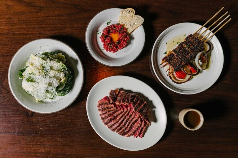 MatÅ« Kai brings grass-fed New Zealand Wagyu to Brentwood with an upscale yet approachable touch. The menu takes steakhouse classics in fresh directions: think rib-eye ragu, tenderloin satay and cheesesteak sliders alongside traditional cuts. A four-course prix fixe dinner keeps things streamlined, while the open kitchen fills the room with a warm, smoky aroma. The space channels modern minimalism with moody lighting and wood accents, offering the perfect backdrop for both casual dinners and special occasions. MatÅ« Kai is proof that exceptional steak doesnāt have to feel formal.