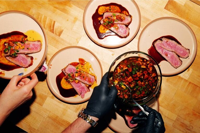 Dinner as spectacle, dinner as connection, dinner as the kind of night you remember. Le Le takes the new LA restaurants 2025 category and turns it into an immersive event. Thereās limited seating, Southern Italian flavors executed by Chef Daniele Uditi, and wine pairings that feel like theyāve come straight from a villa in Campania. The $295/ person experience evolves with the seasons, featuring past highlights like wood-fired ribeye, lardiata pasta, tagliata steak and housemade focaccia to start the meal. If youāre wondering where to eat in LA now and want more than just a meal, this club-like dinner delivers.