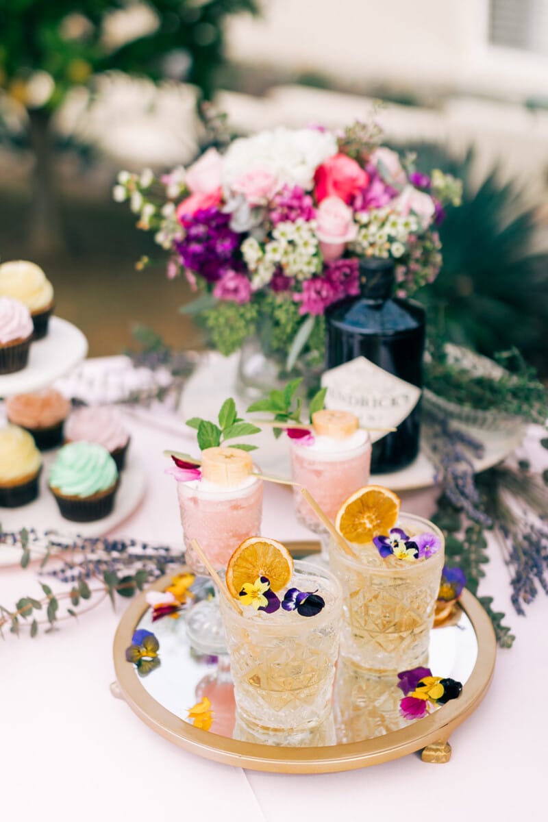 The garden party: it’s the epitome of class, elegance and—most importantly—good taste. Surrounded by gorgeous foliage, you and your guests can easily soak up the visual and aromatic beauty around you while allowing yourselves to focus on the simple, all-important art of good conversation. A garden get-together such as this is the ideal opportunity to don your Sunday best, brush up on your etiquette and indulge in the finer things. And what better way to set the scene that with a timeless arrangement of fabulous florals, sweet bites and colorful Hendrick’s Gin-based cocktails?