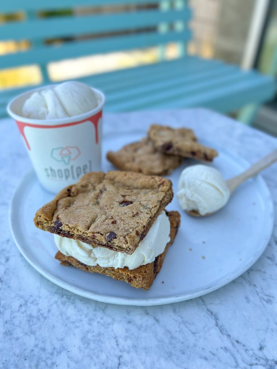 Shop and indulge in some dee-lish ice cream at this combination ice cream parlor and gift shop. You can peruse a wide selection of candles, artwork, greeting cards and other treasures, then treat yourself to a build-your-own ice cream cookie sandwich. Combine your choice of cookies (which are made in-house) with a cappuccino crunch or mango sorbet ice cream. Shop(pe) Ice Cream & Shop also offers milkshakes, smoothies, soda floats, affogatos and more!