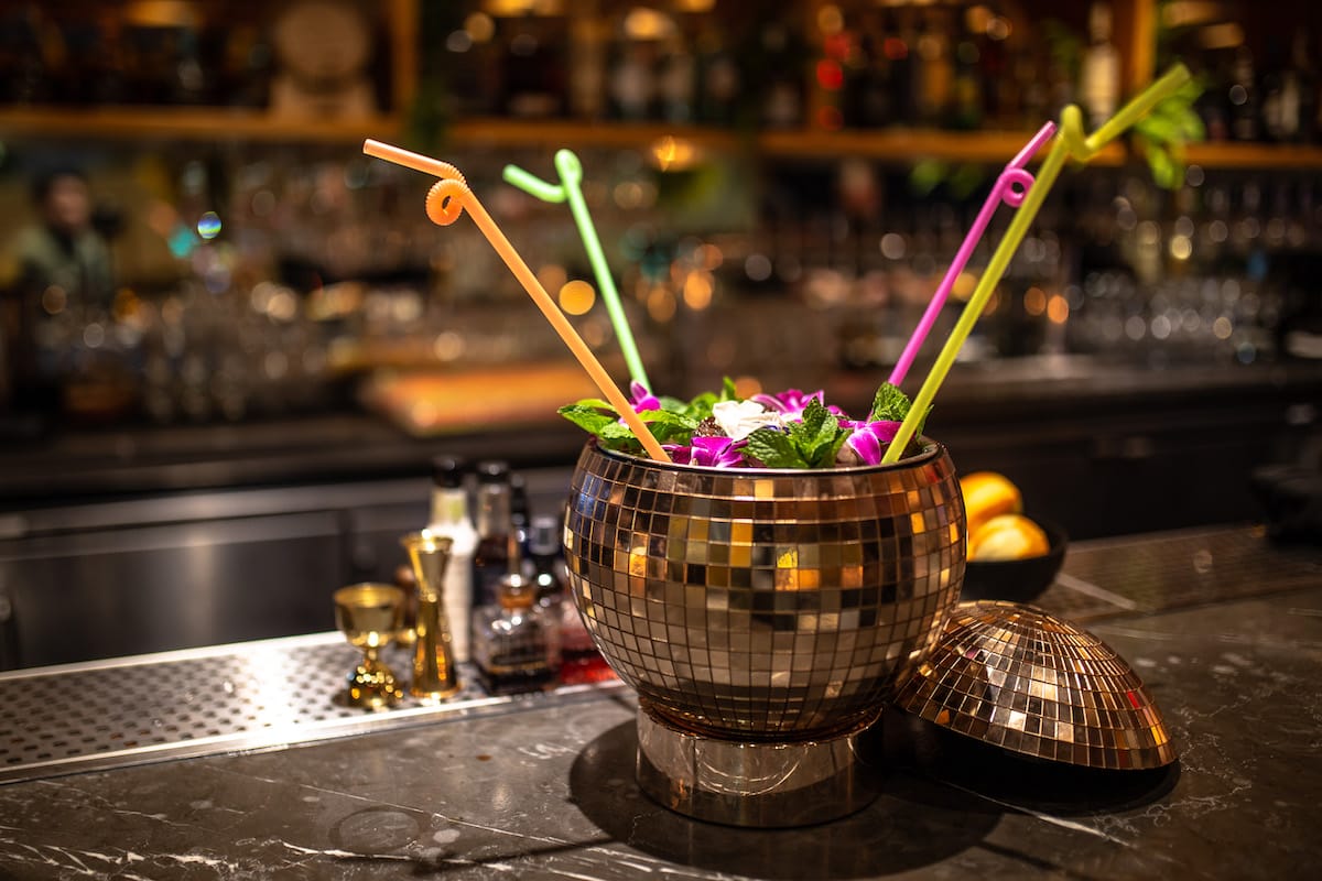 Grab your drinking buddy and head to North Park’s Louisiana Purchase for a groovy Pablo Discobar! This funky drink is made with Earl Grey Elyx, Colombian rum, oleo saccharum, guava, mango and kombucha, all served in a sparkly disco ball. Ooh la la! Grab a straw and bring your dancing shoes!