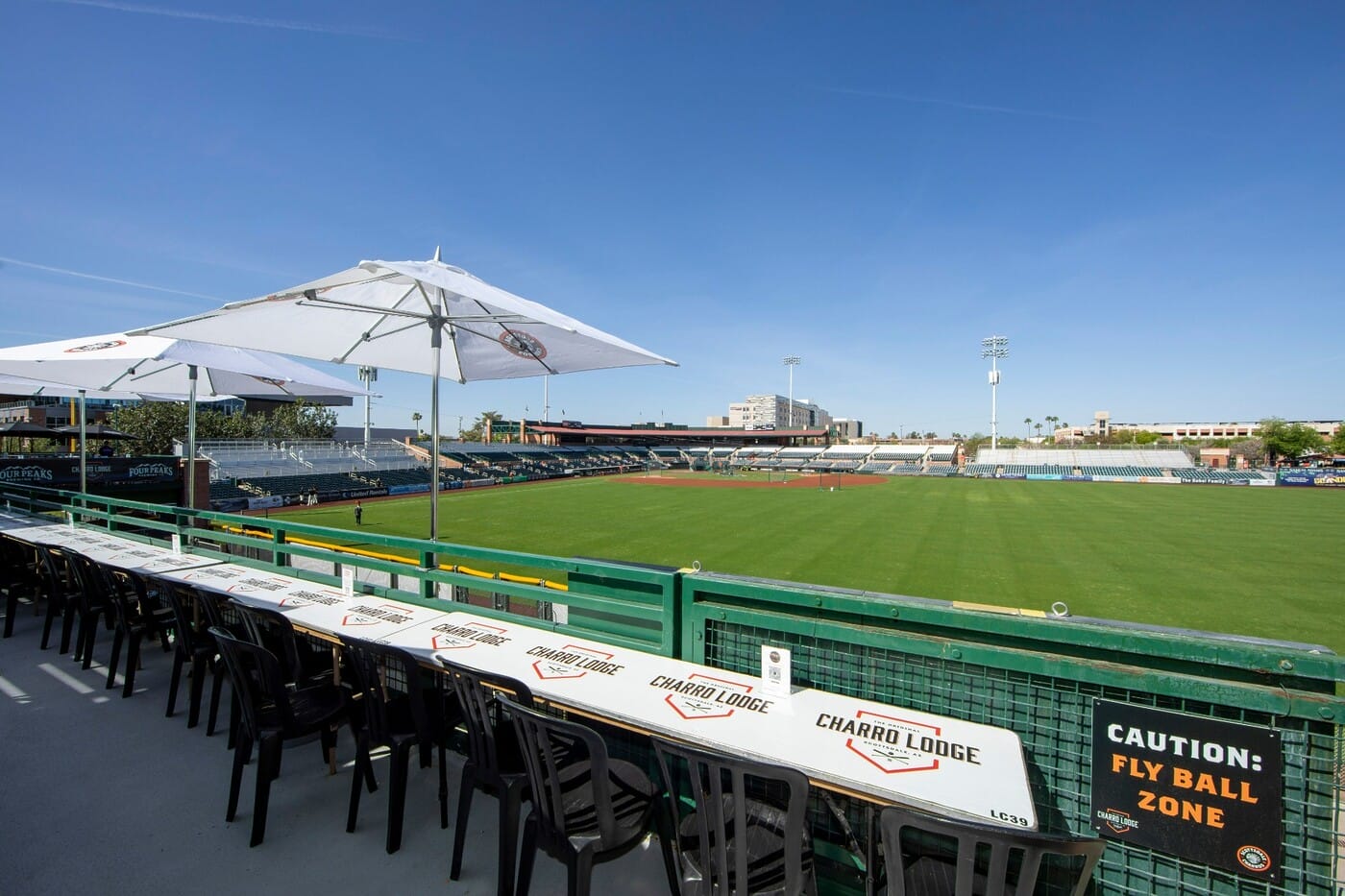 Spring training season is gearing up! Baseball lovers and non-sports fans alike will enjoy the thrill of catching each play from the best seat in the houseāCharro Lodge at Scottsdale Stadium. Watch your favorite players hit home runs while basking in the VIP treatment at the Cactus League stadiumās private facility, featuring relaxed patio-style seating and all-inclusive food and bevs.