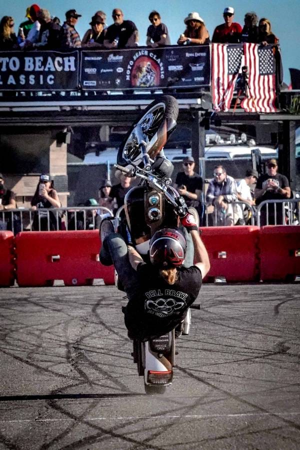 Now in its ninth year, the Moto Beach Classic has evolved from a passion project into a cultural institution, drawing everyone from die-hard riders to first-timers lured in by the rumble of engines and the scent of saltwater and smoked rubber. The parking lots to the left and right of SeaLegs at the Beach transform into a carnival of chrome, sand and adrenaline, hosting everything from concrete cowboy stunt shows to custom bike builds, all set against a Pacific Ocean backdrop.