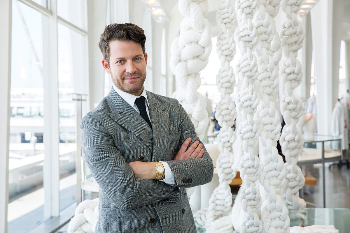 Nate walks onto set relaxed and sporting jeans and a t-shirt. He flew in from Chicago late the night before and caught a case of the sniffles, but with a cup of tea in hand, he was seemingly in tip-top shape to chat with me, throw on some different outfits (all from his own wardrobe, of course), and found a bit of energy to cruise through A’maree’s and tell shoppers how “chic” their outfits were in between looks. A stunning August day on the Newport Beach peninsula seemed to be just the prescription for him.