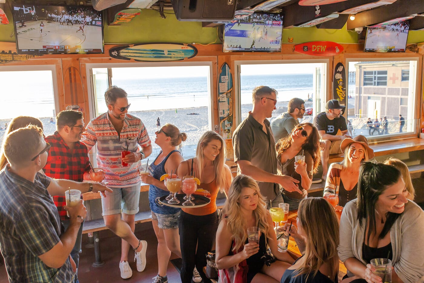 PB Shore Club is kicking off football season in the best way! It’s time to throw on your team’s jersey, down a beer or two and watch the games at PB Shore Club’s chill rooftop lounge! The upstairs sports bar is equipped with plenty of flatscreen TVs and a delicious selection of finger foods. Enjoy drink specials like $6 Budweisers, Shock Tops, Big Waves, Longboards, Altos and Jameson, and be sure to check out the Game Day Platter—a grand plate of fried snacks for you and your friends to share. With their indoor-outdoor patio setup, you won’t miss a single touchdown—or the golden hour sunset views!