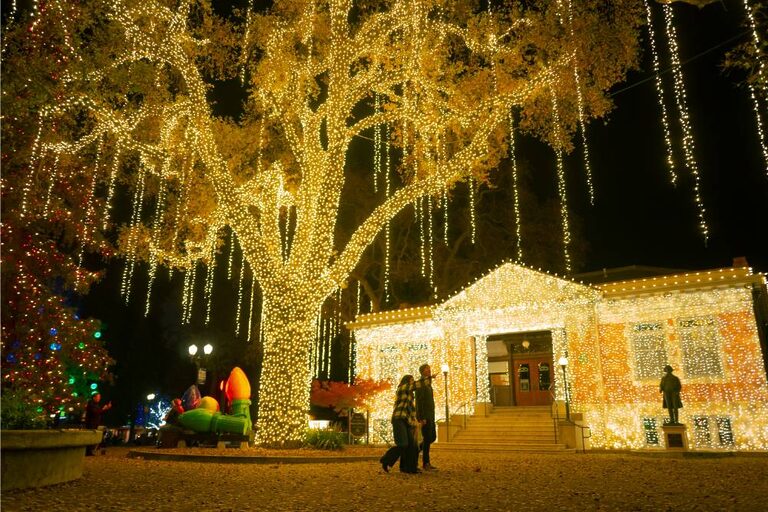 After dinner, plan for a little extra magic. Time your visit to catch the Vine Street Victorian Showcase, a one-night-only stroll past glowing, decked-out historic homes, or make your way to Sensorio, an immersive installation of glowing orbs and lanterns that transforms the hillside into a dreamscape year-round.