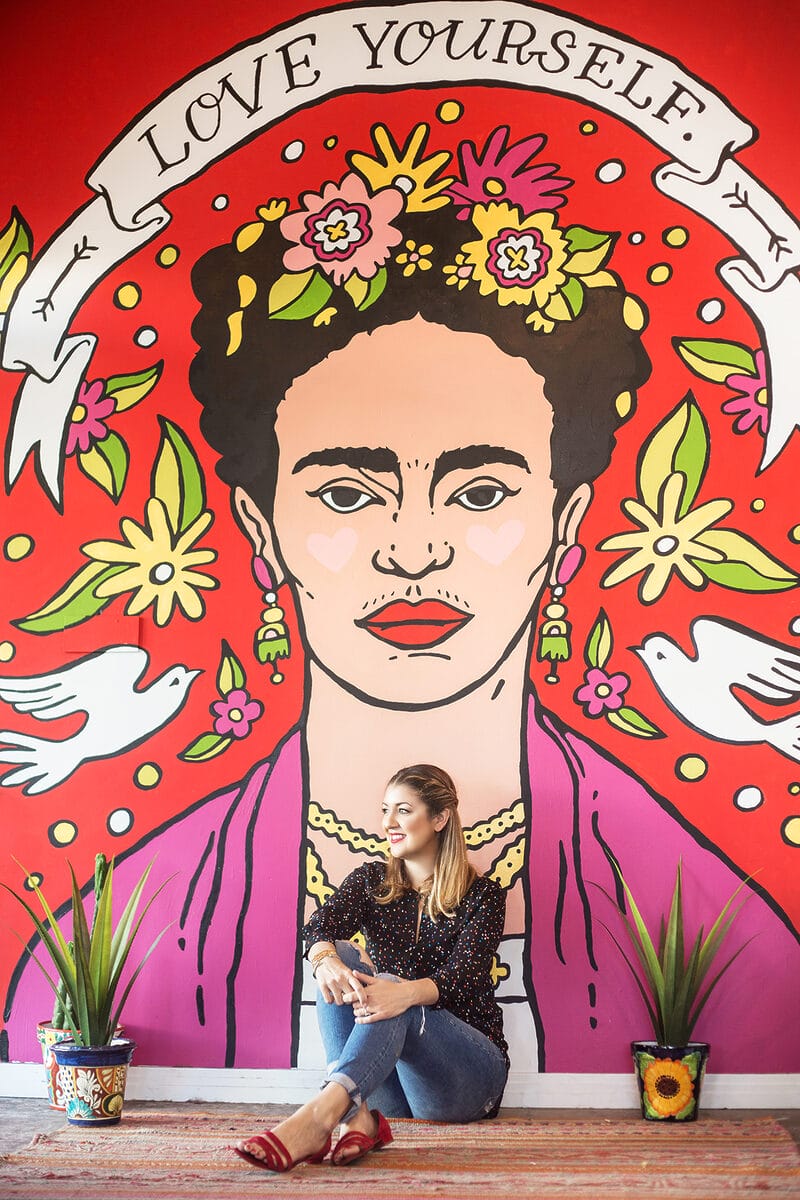 Just a few years later, Elexia de la Para now owns two booming retail locations in North Park that transport visitors to Mexico without ever having to leave their backyard. The retail fronts are designed with bright and bold colors, the Ray Street location even has a large mural as a tribute to famed Mexican artist, and fellow girl boss, Frida Kahlo, reminiscent of Mexican art and are filled with authentic folk art pieces, including cards, wall décor, kitchen supplies, journals, pins, clothing and everything in between. During trips to Mexico, de la Parra handpicks each of the items in both shops from local markets. The air fresheners, enamel pins and buttons, bilingual cookbooks and children’s books, painted glassware and embroidered pillows are among de la Parra’s favorite items in stock right now.