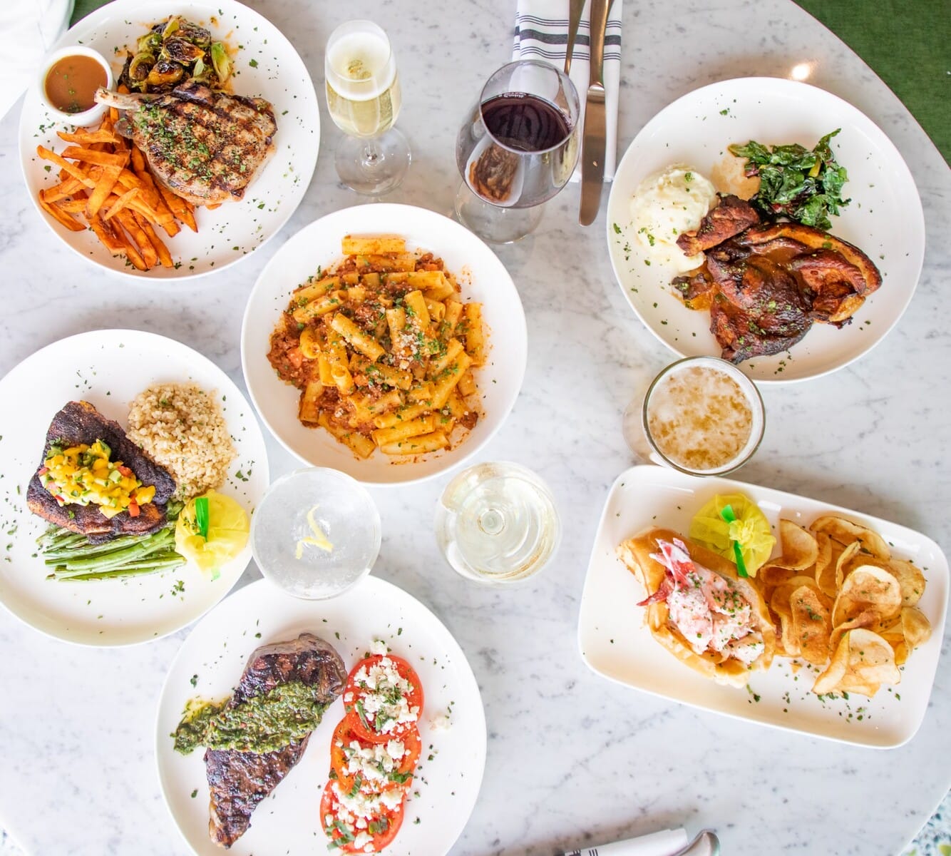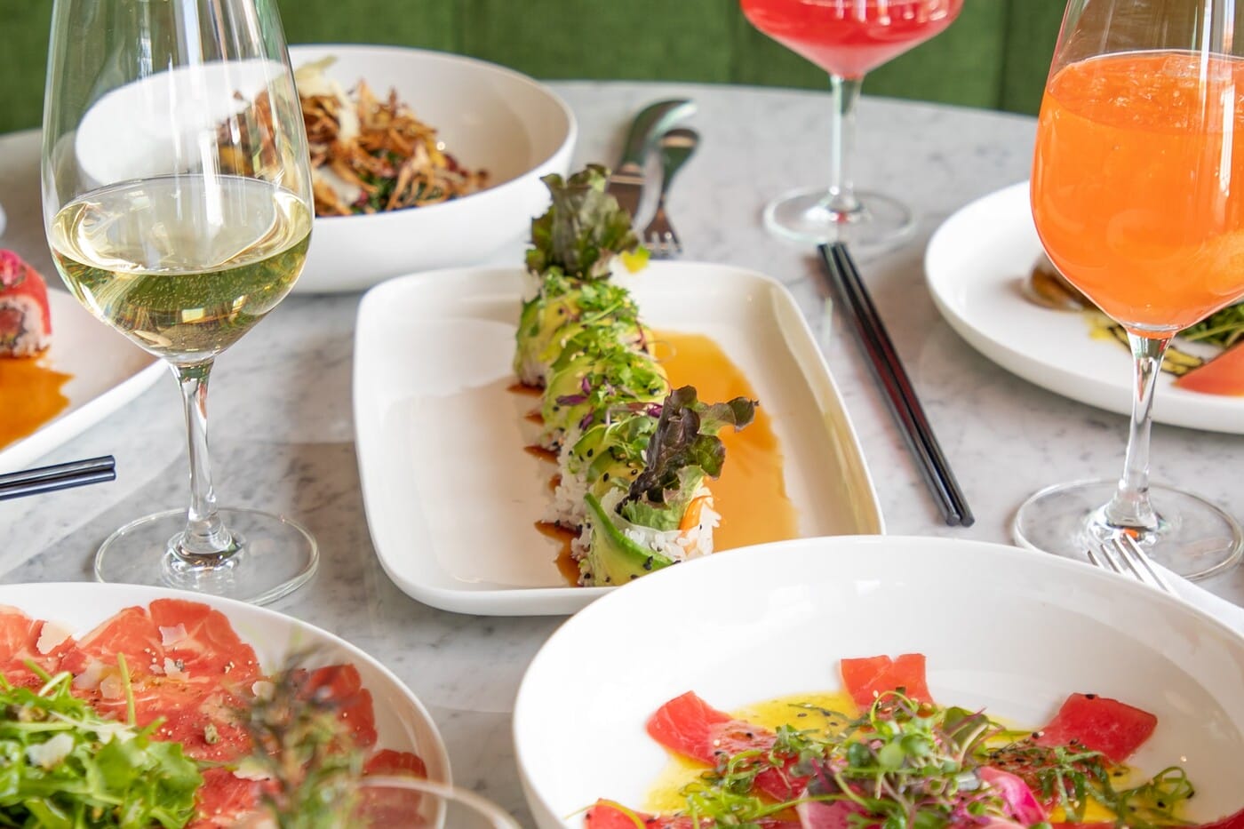 Menu highlights include the Porta Via Salad with butter lettuce, Maui onion, dill, chervil, French feta, and avocado in champagne shallot vinaigrette. Other standouts are the Grilled Ōra King Salmon, Butternut Squash Tortellini, and Chef Brennen’s daily oyster and raw-bar picks. The cocktail list features artisan drinks made with local fruits, herbs, and wines from small, sustainable, and organic producers. It’s all part of the restaurant’s philosophy—fresh, thoughtful ingredients served with style and intention. A selection of champagne and sparkling wine are offered for celebratory events.