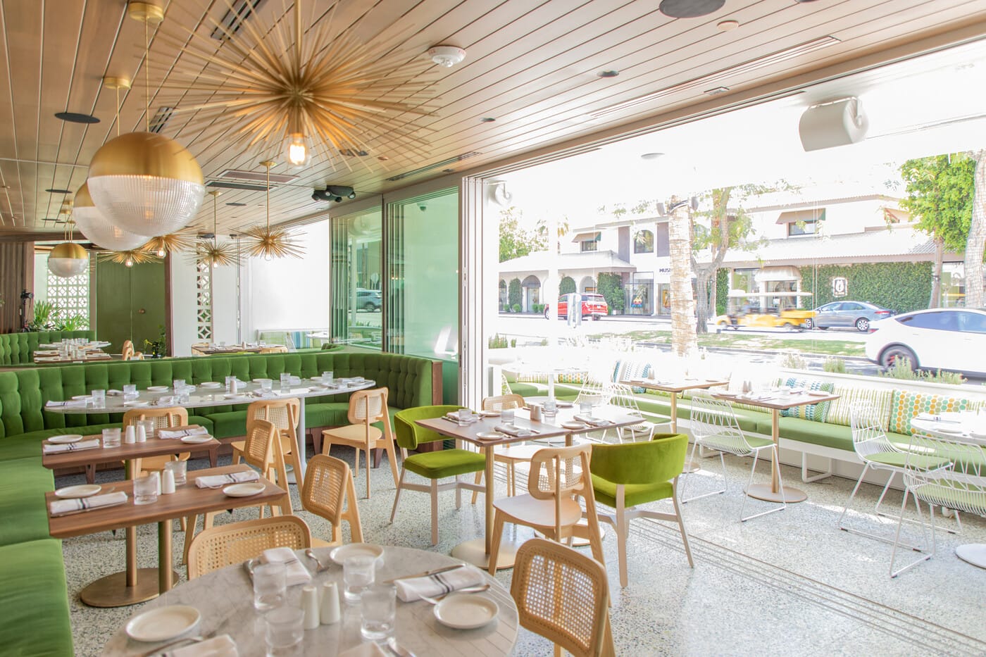 Porta Via at The Shops on El Paseo is the fourth restaurant location for owner Peter Garland. The new Palm Desert location takes over a 5,000-square-foot space at El Paseo and Ocotillo Dr, formerly home to Escada. For the design, Garland teamed up with LA Times Top 25 Designer Sophie Goineau to channel classic desert midcentury style. This marks their third collaboration, and guests will be smitten with the space’s thoughtful touches and striking attention to detail.