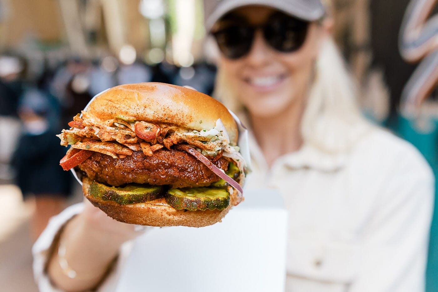 Must-Order: The Hot Hen Sandwich and a Souvenir Beer Bat With Juneshine Mango Daydream