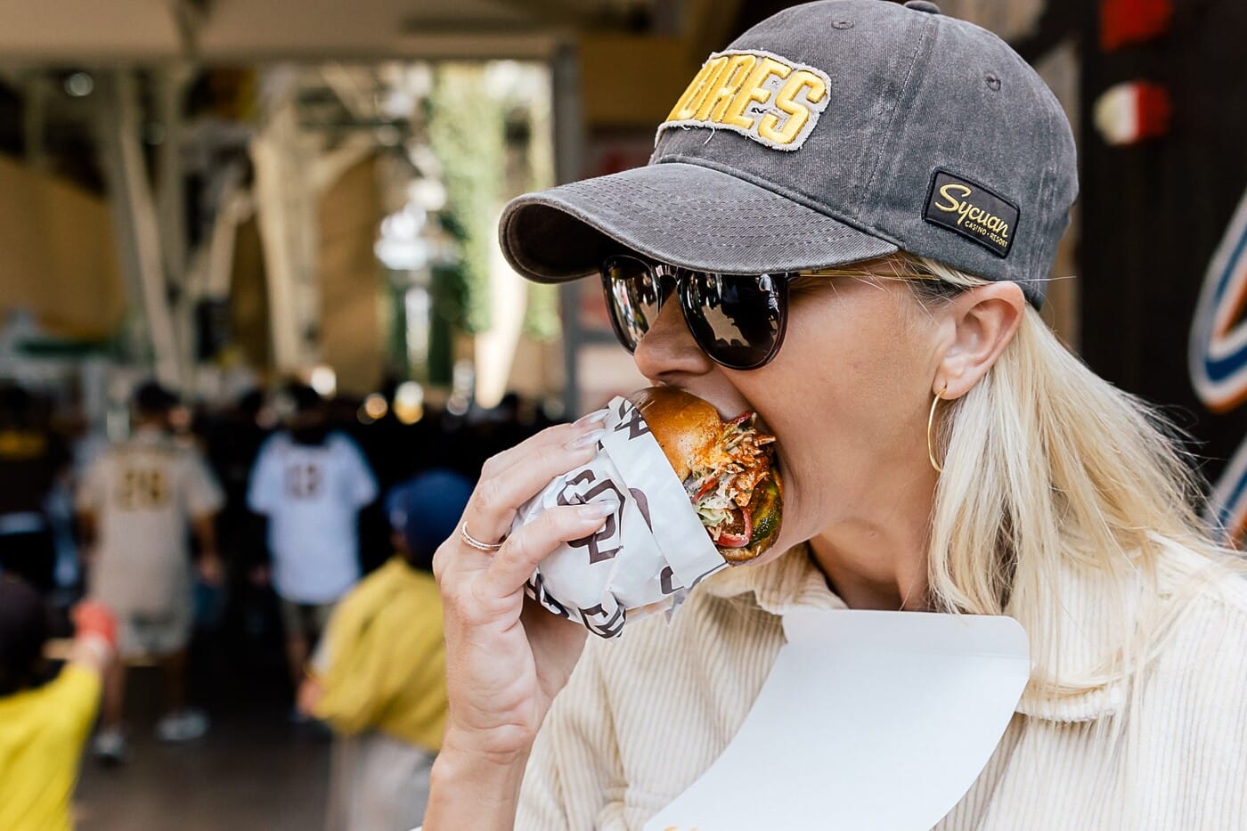 While I’ll always recommend showing up to the game in all-out Padres attire head-to-toe, don’t fret if you don’t own any Padres swag. At select games throughout the season, the first 40,000 fans in attendance benefit from epic giveaways with branded items ranging from classic bobbleheads and replica jerseys to trendy bucket hats and belt bags! Upcoming giveaways include a chic Padres Belt Bag (June 5), a colorful Padres Hawaiian Shirt (June 14), a Yu Darvish (legendary pitcher) Bobblehead (July 24) and more. Many of these items also feature the vibrant color scheme of the team’s new City Connect uniforms. Nike has worked with each MLB team to craft a kit that expresses the characteristics of the team’s home city, and the Padres uniforms were inspired by the vivid landscapes in the San Diego and Baja California communities. If you’re into surprises, leave it up to chance, or you can plan ahead and check their giveaway schedule to determine which days you really want those tickets.