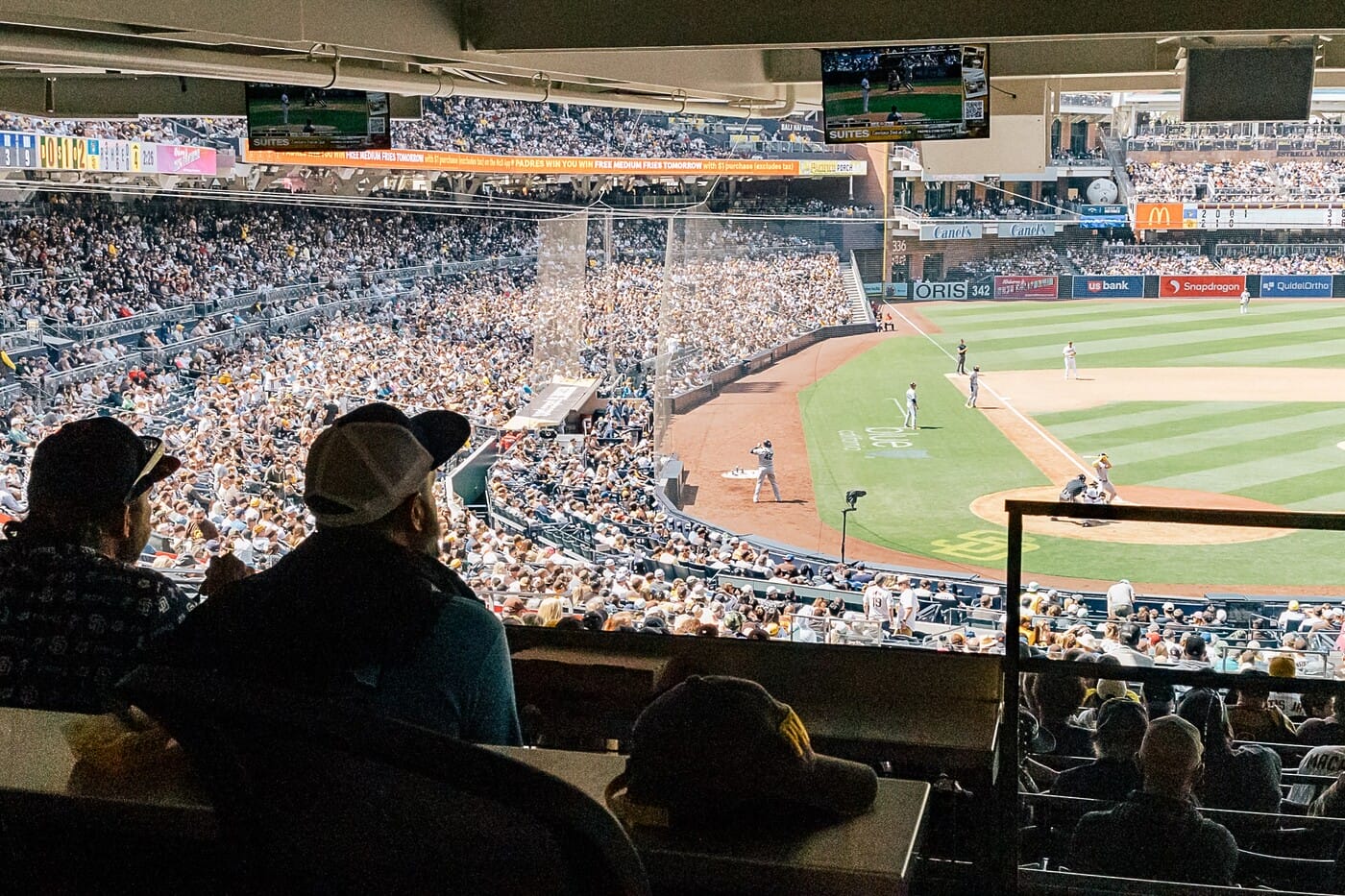 When it comes to catching a ball game at Petco Park, there isn’t a bad seat in the house. The stadium features a variety of epic viewing spots (open to anyone with a ticket!), including The Loft, located inside the Western Metal Supply Co. Building on the second level, where Budweiser beer flows and you can shoot a game of pool with your pals. Another hotspot for hops is Alpine Beer Company, an expansive rooftop taproom, with craft brews and scenic views of the Coronado Bridge! And possibly one of our favorite spots to watch the Padres do their thing is at the Craft Pier by Ballast Point, which sits just behind the wall in right-center field. Inspired by the local beach lifestyle, this space is perfect for mingling and features open seating with Adirondack chairs along the front row and high-top tables with chairs throughout the space. Looking for a more private experience? The park also offers a ton of semi-private unique spaces for groups, like the Toyota Beach (just below the Craft Pier), Sunset Patio over first base and the Templeton Rye Barrel Deck that sits level with right-field. And, of course, there’s always the Premier Club Suites, Tower Loft Suites and Terrace Suites if you’re feeling extra fancy.