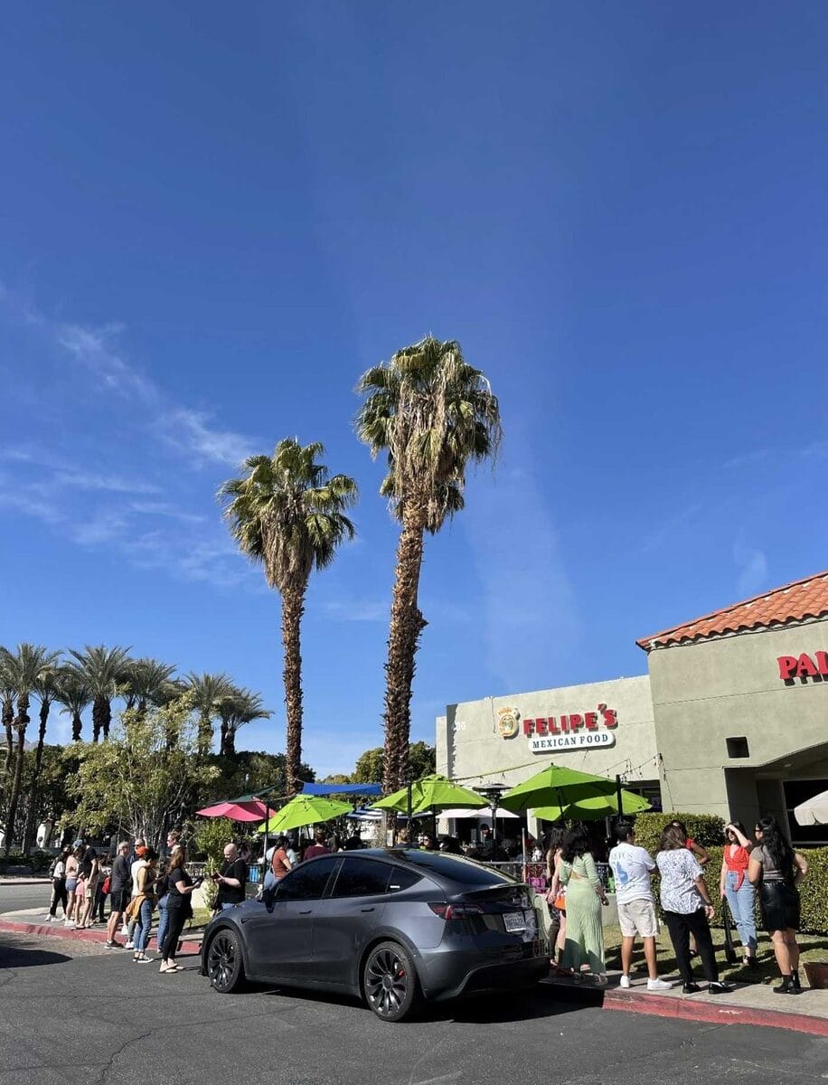 One of the best fast-casual Mexican restaurants in Palm Springs, El Patrón opened its doors in 2019 and has been feeding crowds of hungry taco-and-tequila-seekers ever since. Known locally for serving up impeccable vibes and even more impeccable food, it’s easy to see why this spot has earned its place on this list of local favorites. At El Patrón, we recommend sticking with a truly classic combination: a pair of juicy carnitas tacos with a Cadillac margarita. However, if you want to try something super unique, the prickly pear cactus margarita and bacon-wrapped Tijuana street dog are totally worth the splurge.