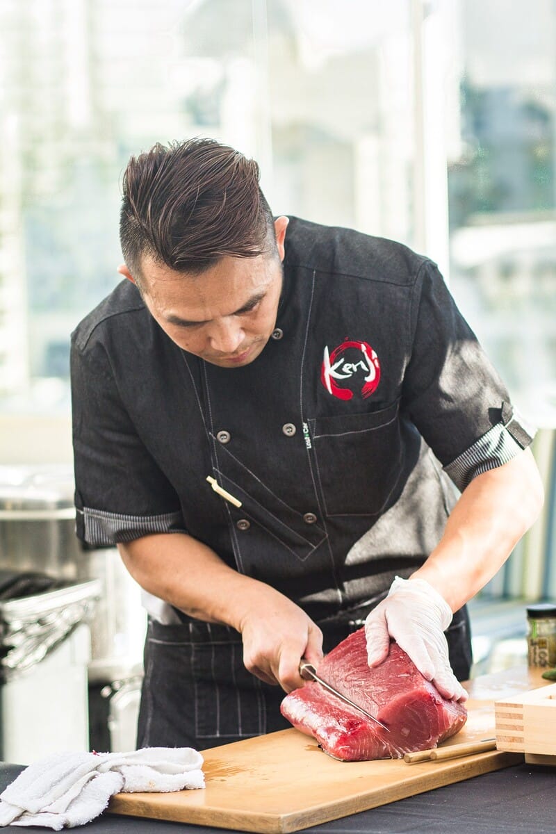 KT: Tony Roma’s [chuckles]. Then I moved to a Japanese restaurant and then on to Benihana’s. Then my plans changed and I started working on my degrees. I got my AA in Palm Desert and then moved to UCI and got a degree in computer science. Once I graduated, I got a job at a database company for automotive manufacturers but on the weekends I was still doing sushi. I was working in restaurants anywhere I could and soon it became obvious that I loved doing this more than my career. So, after six years in my professional career, I left my job and decided to run a sushi restaurant. I built it from the ground up as a manager and head sushi chef. Then a sushi chef offered me an unpaid internship to study and learn sushi more formally. Once the internship was over, my mom and my sister were moving to Las Vegas so I decided to move with them. I went to the Aria and auditioned for a job at Bar Masa run by Masa Takayama. In the end, he offered me a job but at his new restaurant in New York City. It was a dream job but I had to turn it down because my mom was sick and I didn’t want to leave the West Coast. I bounced around to other sushi restaurants learning a little bit more from everywhere I worked while sushi became more of an obsession. I’m always looking to improve and cook from the heart.
