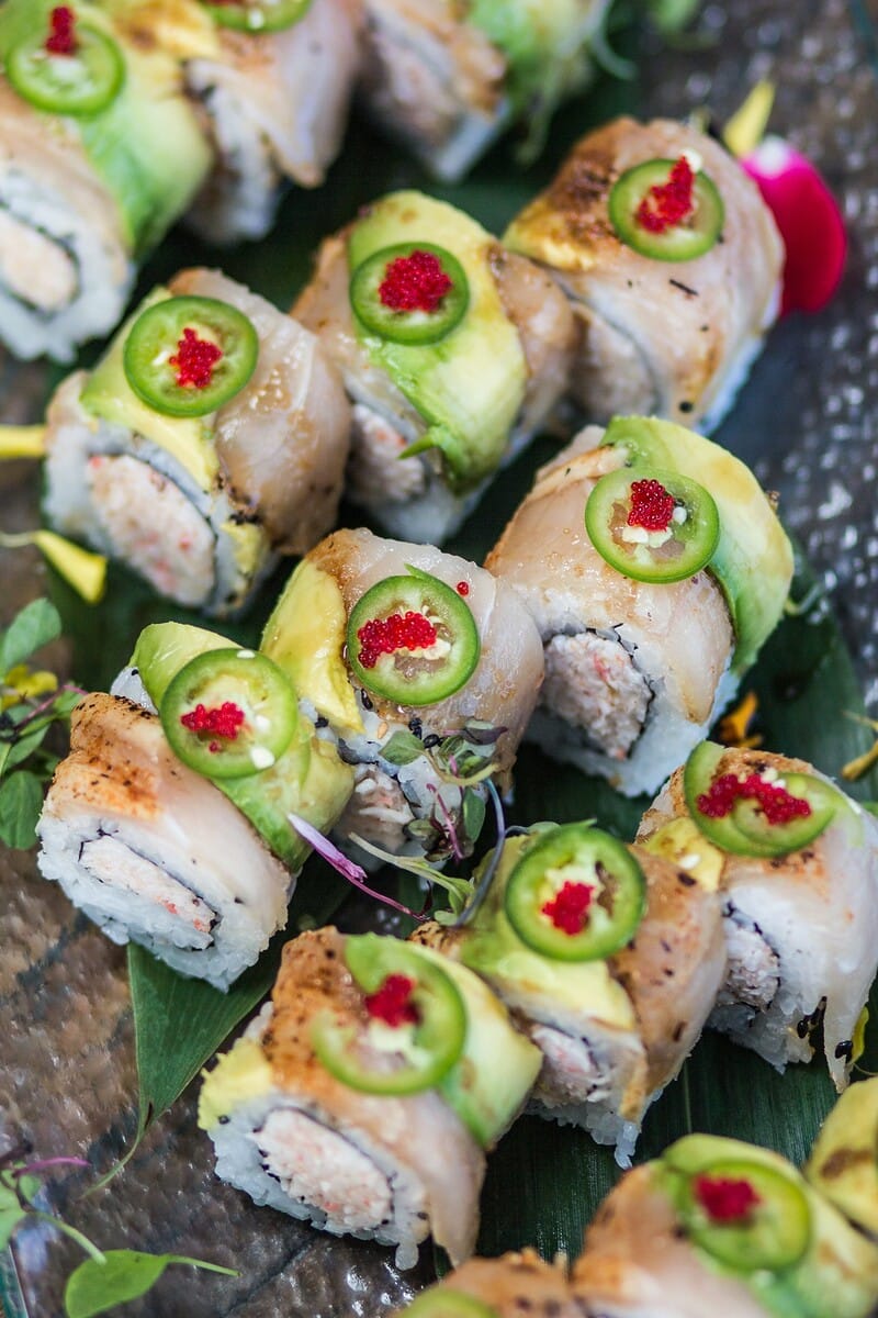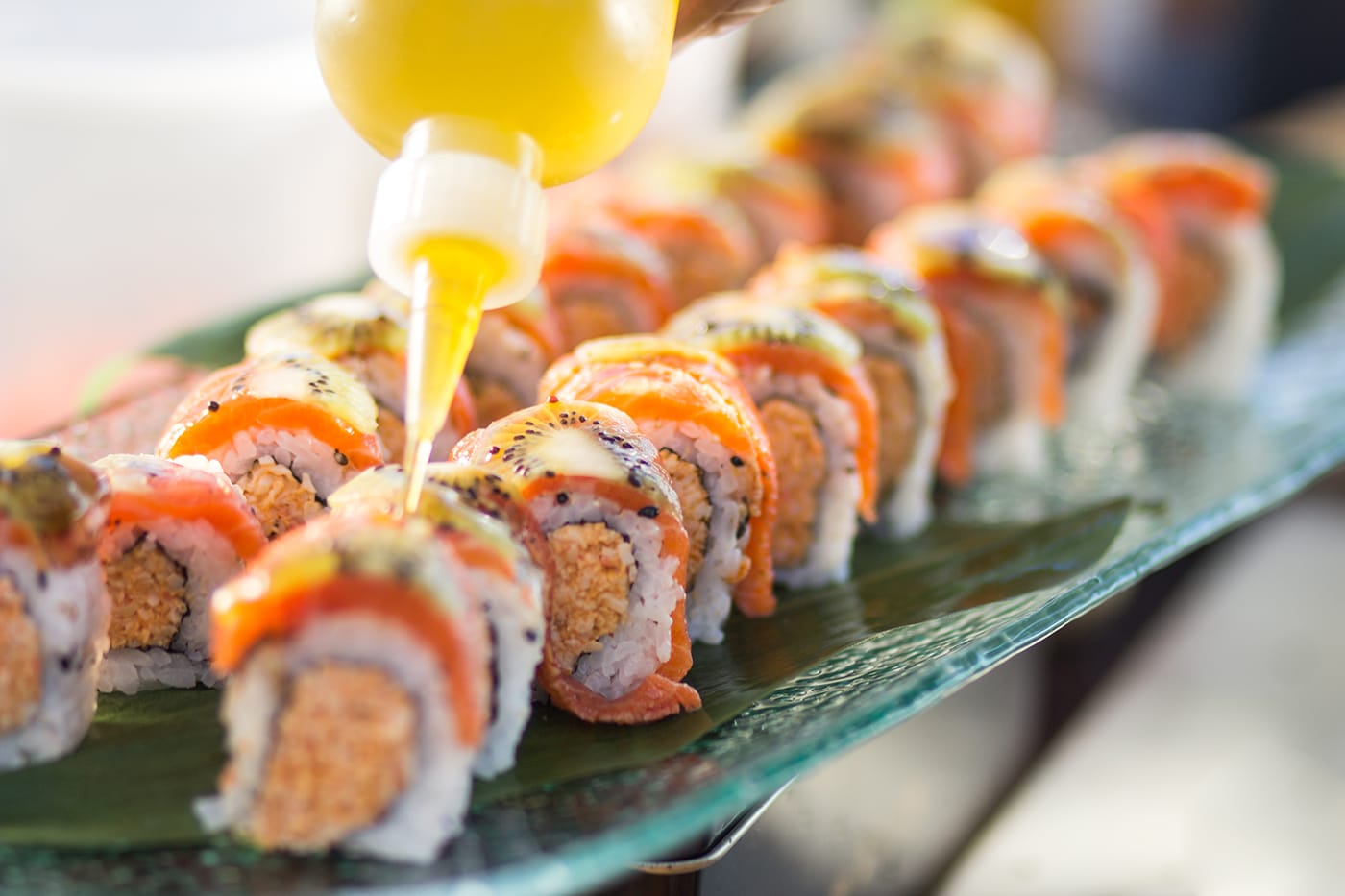KT: Quality ingredients, custom menu, craftsmanship, attention to detail, presentation, professionalism, one of a kind creations, dedication to bringing long-lasting memorable experiences, passion. We take great pride in our work and have a desire for excellence. We’re always coming up with new ideas and creations so our regular clients always have new things to try. We take input from the clients and ask them what they would like us to create based on their vision of the event, then we transform their vision into reality with our own style of sushi and cooked dishes.
