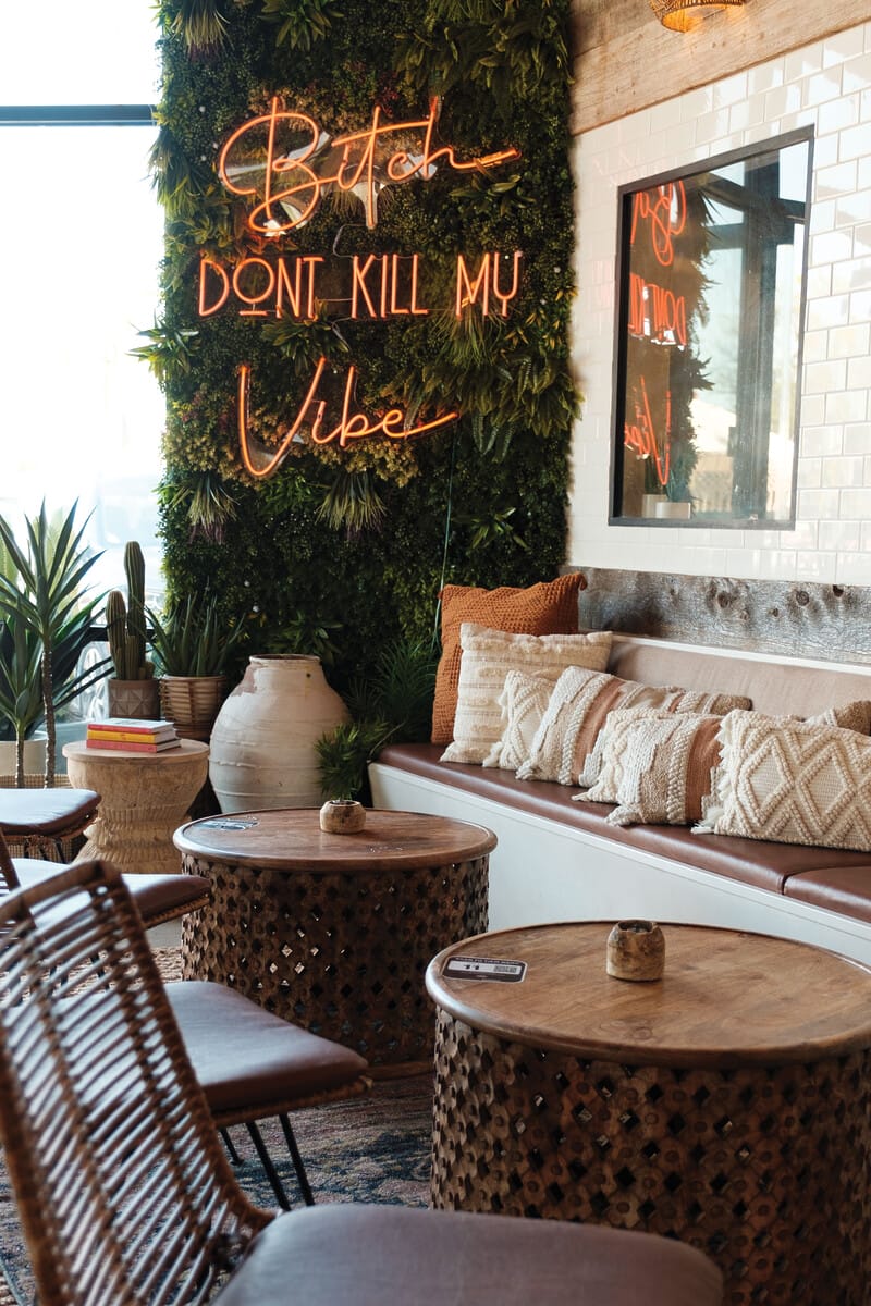 If you’ve been dreaming about a tropical Tulum getaway, then an escape to this eatery is a must! As you walk through the palapa-inspired entrance, expect to lose yourself in the lush greenery and bohemian accents.