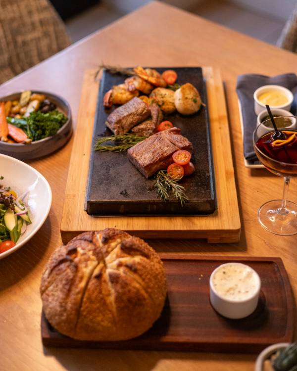 When the sun dips low, head to Antidoteāa bar and social hub with panoramic mountain views, plush lounge seating and a 300-square-foot SkyWatch TV. The menu leans bold and shareable, with highlights like the French onion cheese dip with gooey gruyĆØre and toasted crostini, elote tacos topped with cotija and TajĆn and the crowd-pleasing steak frites with chimichurri. And the drink list? Sip on the Just Like Heaven, a visually stunning mix of butterfly pea flower-infused Bombay Sapphire, St-Germain, citrus and Mediterranean tonic.
