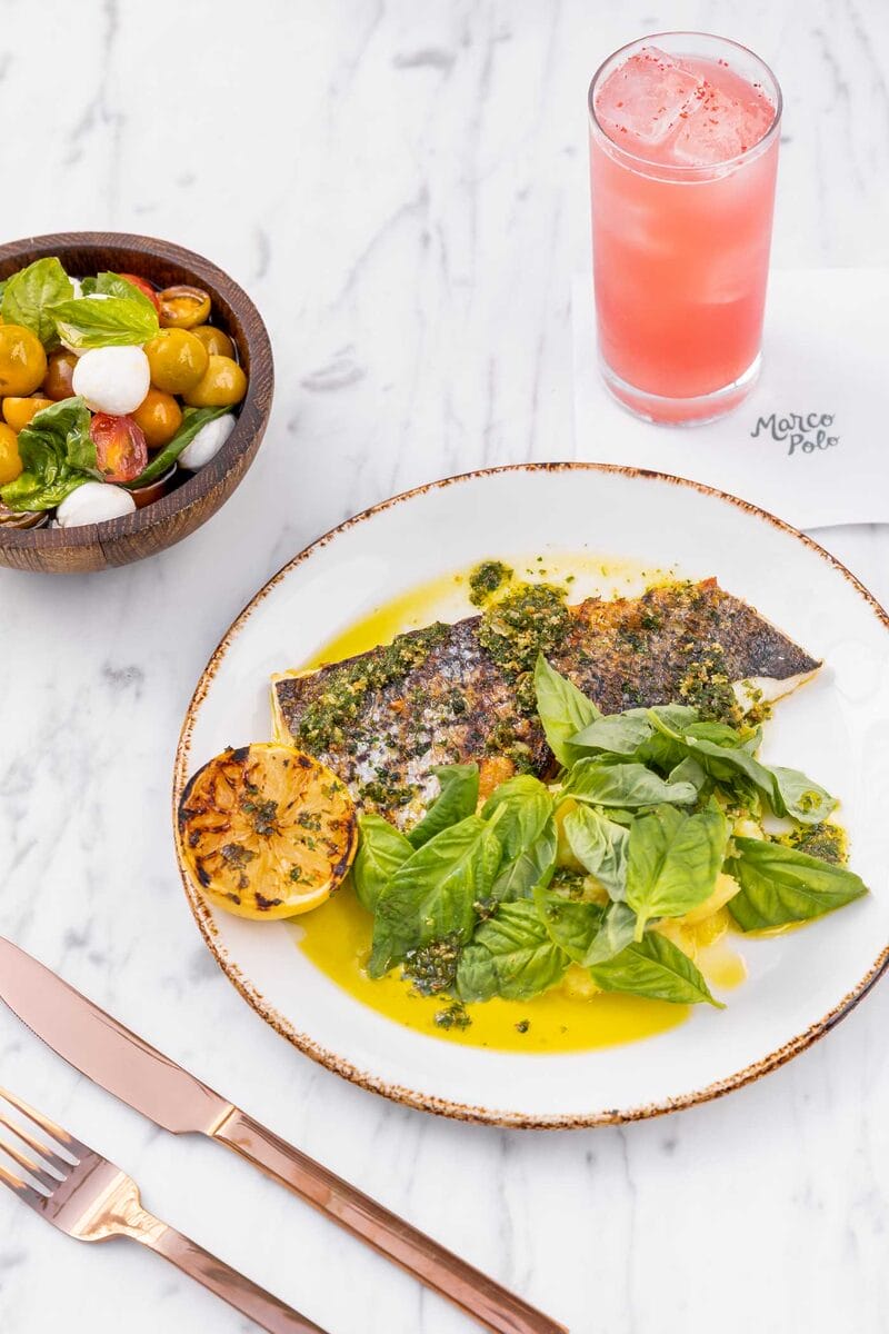 Downstairs, Marco Polo serves Mediterranean-meets-California plates that are anything but boring. Don’t miss the spicy ravioli caprese or the focaccia with olive oil, rosemary and confit tomatoes.