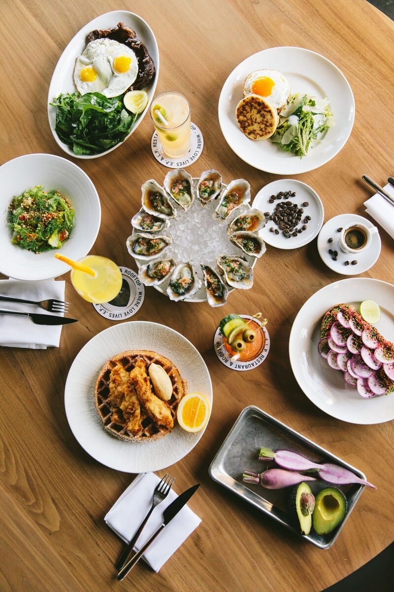 E.P & L.P. is a happening oasis for West Hollywood locals and visitors alike. The L.P. Rooftop is without a doubt one of the most popular rooftop bars in LA, making it a top contender for a girls’ night out. Though you can grab a bite at Bombo on the restaurant level before heading upstairs, there are also some tasty bites served on the rooftop. Snag a corner booth and take in the picturesque views while sipping on the prickly pear- and rose-forward Sex on Fire cocktail. From tacos and burgers to calamari, there are plenty of shareable plates to enjoy if you need a snack.