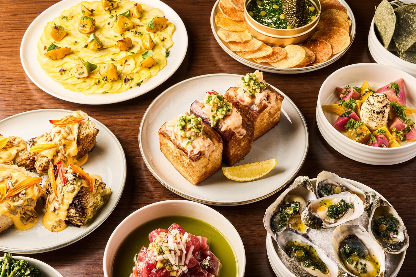 Say bonjour to the newest French restaurant to land in West Hollywood. ADKT LA combines French cuisine with Japanese influences, resulting in a dynamic menu that is met with an immersive and chic design. Sit at a traditional white-cloth table under a ceiling of paper umbrellas as you indulge in a rich glass of red wine. If your favorite group of gals prefers catching up over a hearty meal and vino to match, this is the place to book. The ADKT seaboard provides a little taste of all things seafood, ranging from sashimi-grade scallops to raw oysters. The $250 tomahawk is the ultimate entree, but don’t forget to order a side of truffle fries and mixed mushrooms.