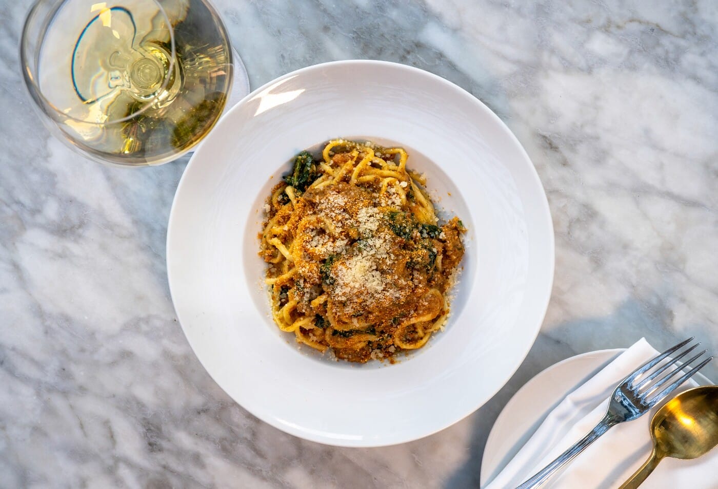 Upon seeing the teal walls, draped ceilings and elegant chandeliers, you’ll immediately understand why Olivetta is the ultimate dinner spot for your girl group. You’ll definitely want to snap some group photos both inside and outside of the restaurant, so be sure to wear your chicest getup. Though walk-ins are welcome, you’ll want to make a reservation in advance. Once you sit down, start with the ricotta-stuffed crispy squash blossoms, bigeye tuna tartare and of course, bread and butter. If the group gets food FOMO, there are plenty of mains that are perfect for sharing, including the Dover sole and porterhouse steak with roasted garlic and Bearnaise.