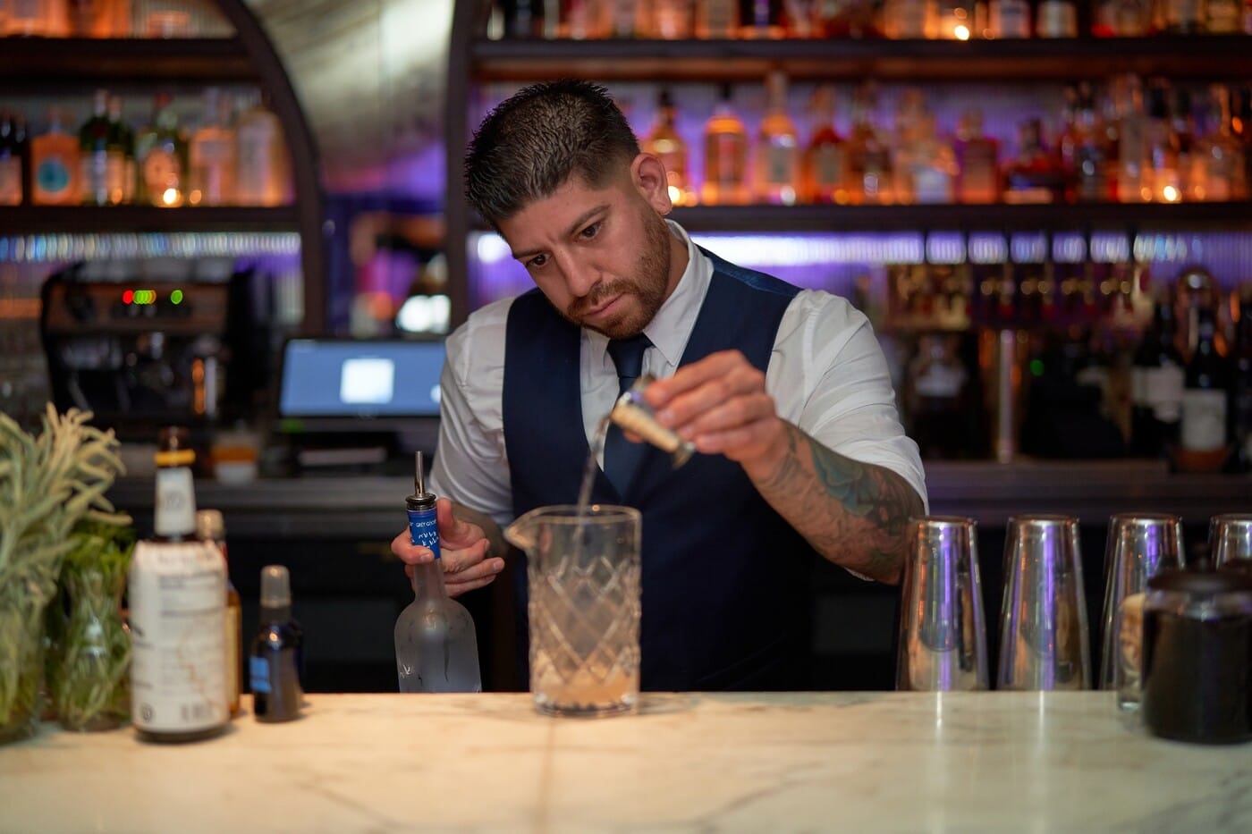 When it comes to craft cocktails, Employees Only is one of the coolest bars in WeHo. Golden Hour runs Tuesday through Sunday from 6-8 p.m., ensuring that you can enjoy discounted bites and drinks at the start of your GNO. Whether you want crispy fried pickles or a light and vibrant fish crudo, Employees Only has it all. However, the craft cocktails always steal the show. The When In Oaxaca is a mezcal cocktail that is smoky yet delicate thanks to the floral infusion of hibiscus, and the signature Manhattan is a unique yet unforgettable take on the classic cocktail. Also, be sure to check out the seasonal list of libations that change regularly.