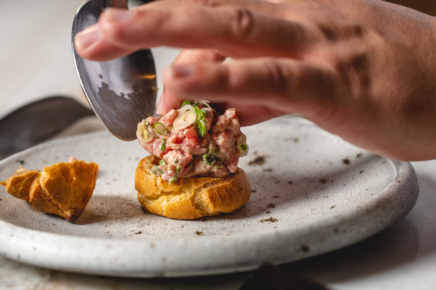 Chef’s choice is always the right choice. Kinme, named after the Japanese word for experience and care, offers an immersive omakase inspired by the multi-course kaiseki tradition. Guests enjoy a 10-course meal in an intimate setting, with dishes sourced straight from Tokyo’s Toyosu wholesale fish market. The seasonal menu features a mix of raw and cooked plates, including daily-changing sashimi, nigiri, and coveted Miyazaki A5 Wagyu beef. While the menu rotates monthly, the sake, wine, and whiskey selection remains, as does the traditional matcha service finale. With only 10 seating times per night, reservations are a must.