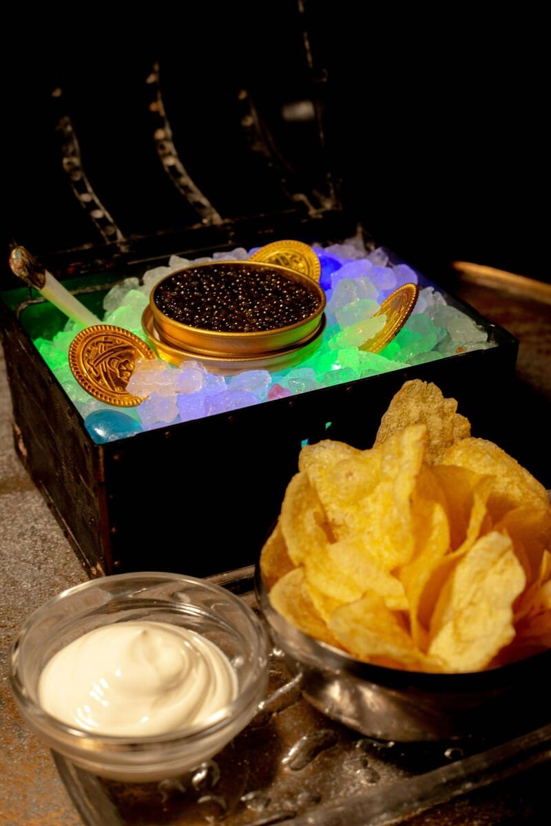 All aboard, mateys! Prepare to sail the Seven Seas on a nautical-themed adventure at Pacific Beach swashbuckling speakeasy Captain’s Quarters. The sophisticated maritime interior of this watering hole replicates that of an old pirate ship. Soak in it’s salvaged light fixtures, vintage portraits and decorative shrouds. Docking on shore just blocks from the water’s edge, Captain’s Quarters fits perfectly in the coastal community of Pacific Beach. The 17th century-themed cocktail lounge delivers an adventurous yet approachable menu of chef-crafted bites and exceptional cocktails for sailors seeking creative maritime fare. Za’atar fried chicken nuggets, caviar service and a Fool’s Gold dessert are all ready to order from the galley.