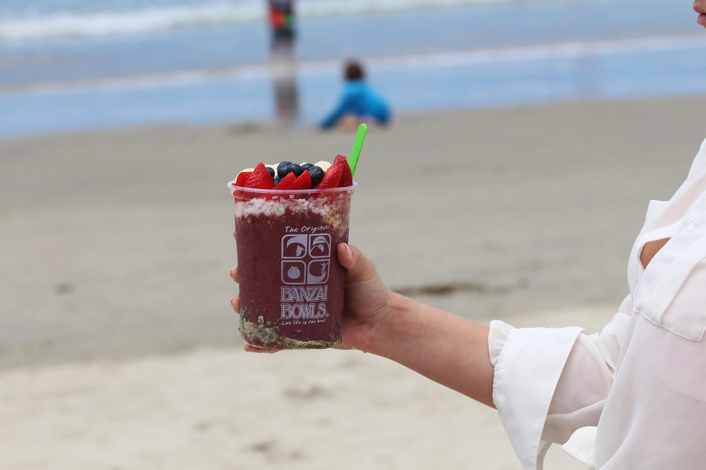 Banzai Bowl serves up the quintessential acai bowl. The Shark’s Cove, a local favorite, has acai, bananas and strawberries with your choice of hemp milk or apple juice, topped with granola, bananas, strawberries and honey. While there are a number of OC locations, the Huntington Beach location is just a few blocks from the sand. The bowls are so fresh, so tasty and will give you the fuel that you need to cheer on the winner of the US Open as they ride that last wave to shore.