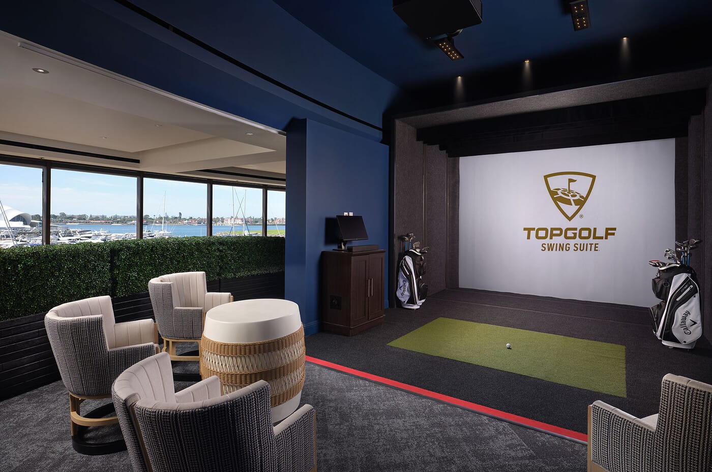 Now it’s time to head back to the Marriott Marquis, drop off your shopping haul and get ready for beautiful views of the marina and lunch at the Bayside Lounge’s Topgolf Swing Suite. Enjoy expertly crafted cocktails and tasty small bites from 19th Hole while playing with your favorite teammates in one of the state-of-the-art Topgolf Swing Suites, which offer an exciting selection of interactive games that’ll have kids and kids at heart working up an appetite.