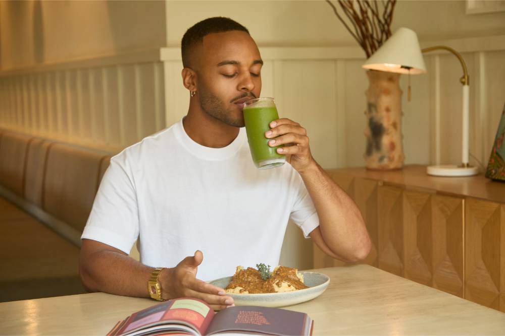 āThe I Am Clear smoothie is the golden answer for people like me who may deal with anxiety, but still want the benefits of an energizing, nourishing drink each day. The uplifting matcha and calming L-Theanine balance truly create a harmony that gives you the best of both worlds; perfect for people sensitive to caffeine. And the I Am Home dish, a blend of inspiration from my Southern and Hispanic roots, is truly a feel-good, endorphin-boosting dish with clean ingredients that release the feelings of any guilt for indulging!ā -Willie Greene, We The Urban founder
