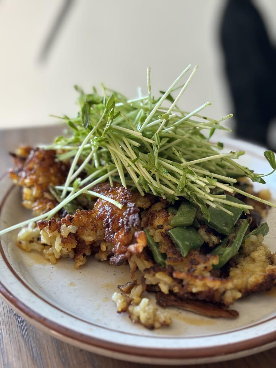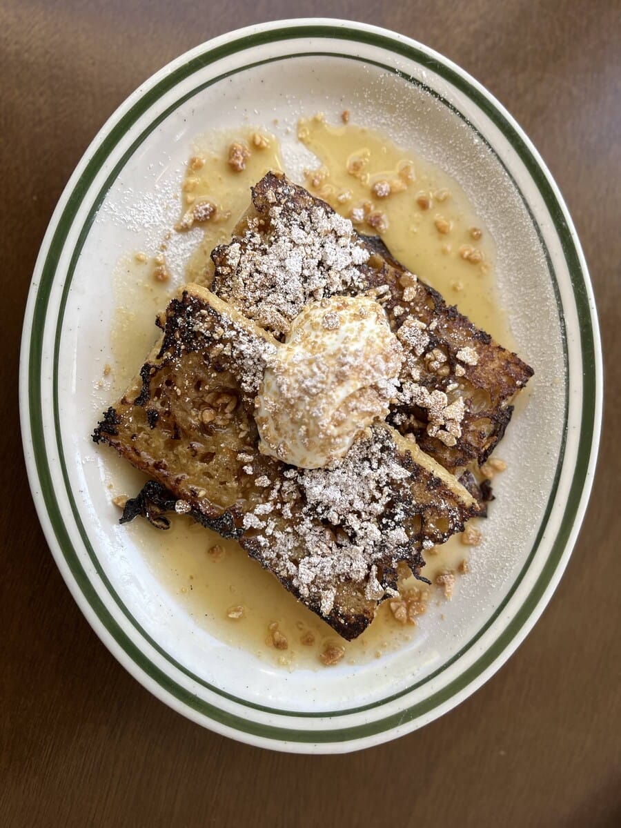 Just minutes from the northwestern entrance to Joshua Tree National Park, this longstanding local favorite serves breakfast until 1:30 p.m. daily, making it the perfect place to refuel after a hike. Choose from buttermilk pancakes, eggs Benedicts and burritos, or consider one of the Roadside Specials, including a ‘SoyRizo’ Hash that can be made vegan by subbing tofu for eggs. The Polenta and Eggs is a lighter option from the Border Crossing section.