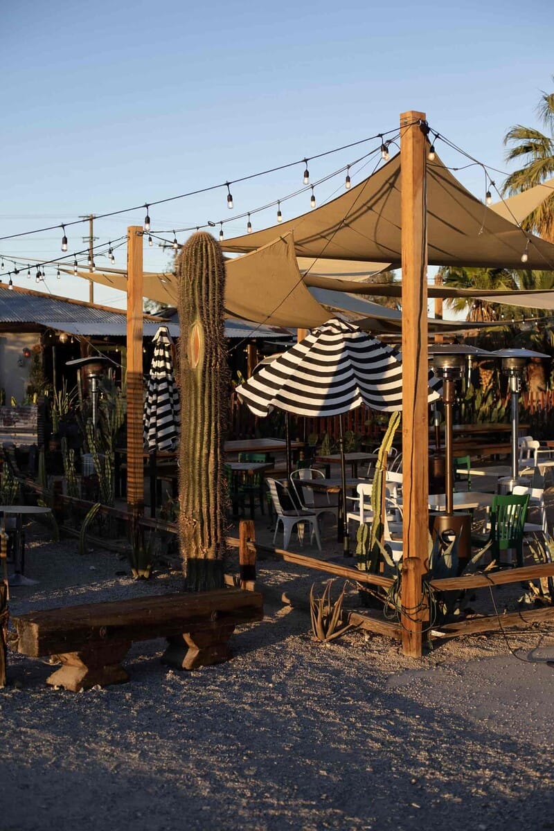 Look for the white adobe with a turquoise door on Twentynine Palms Highway, and you’ll find Más o Menos. This cute bar and coffee shop is a relatively new addition to the high desert whose beverage program features small-batch spirits, natural wine and beer. The Michelada and El Compañero are two top-selling cocktails, but non-drinkers won’t feel left out thanks to a trio of mocktails, including a virgin margarita. Sip fancy beside the patio fire pit after snapping a keepsake pic in their new photobooth.