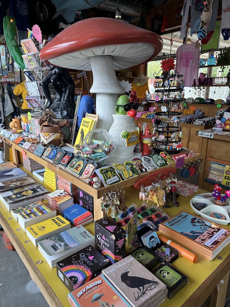 Shop everything from Mexican blankets and cacti to knickknacks, vintage magazines and vinyl at this famous former gas station turned artsy boutique and social hub. The graphic crewnecks and t-shirts by Boss Dog & Friends are also cool Joshua Tree souvenirs to pick up here, but if nothing else, at least snap a photo of the 20-foot cowboy Big Josh before you leave. Beyond being a commercial space, The Station also supports local artists and often hosts events, workshops and live music.