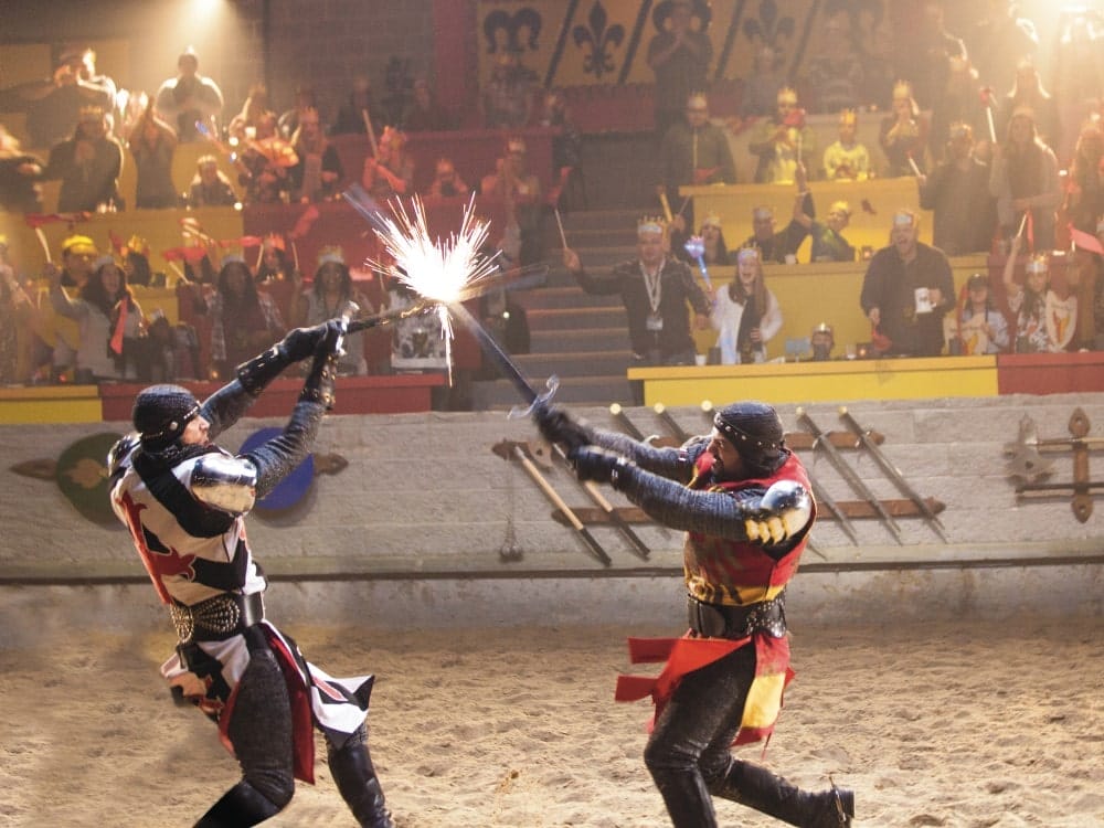 Step into the grandeur of a medieval castle and experience the spectacle of Medieval Times, where the 11th century roars back to life. As you cross the drawbridge, you’ll enter a world of valiant knights, noble steeds, and epic battles. Choose your champion and cheer them on as they compete in jousting matches, sword fights, and impressive displays of horsemanship. The expansive arena sets the stage for an unforgettable night of chivalry, skill, and medieval excitement. Meanwhile, indulge in a four-course, utensil-free feast fit for royalty. With dazzling pageantry, booming battle cries and an immersive storyline, this experience is equal parts theater, action and feast.