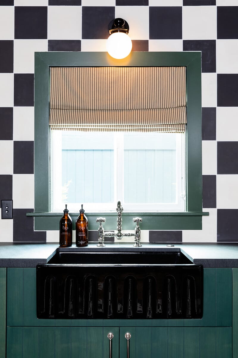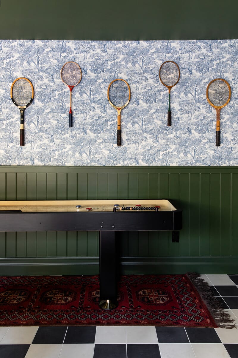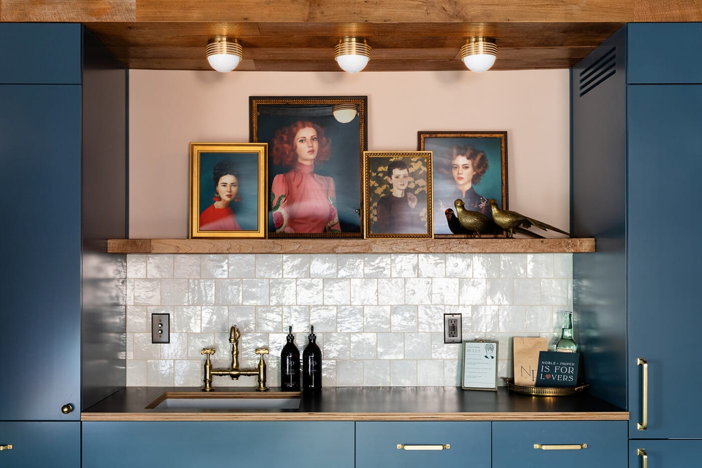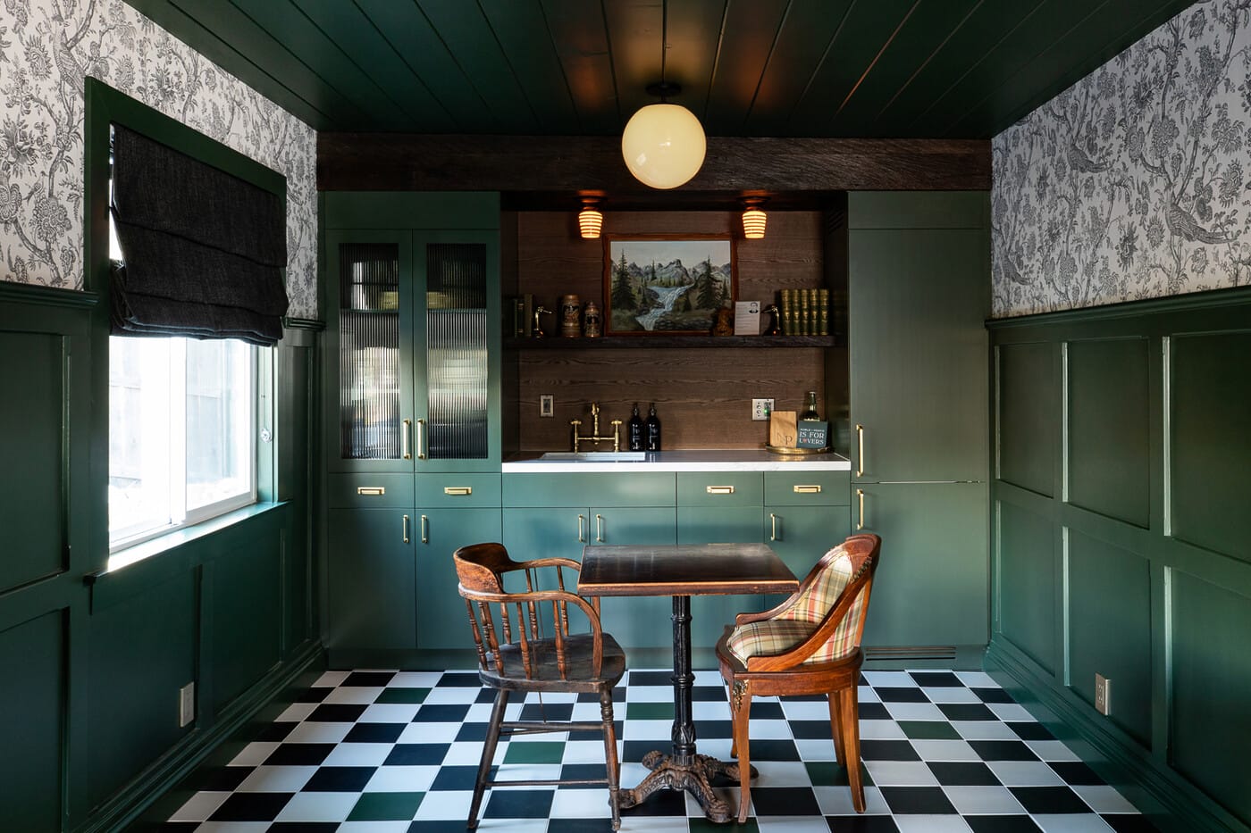 Each private cabin is everything modern cottage core—a millennial’s heaven. Designer and founder Sara Simon is known for her color-charged, highly curated interior projects, and this hotel is no exception. Each cabin features bold wallpaper, contrasting colors, funky tiles and vintage furniture and decor. They took inspiration—and their names—from beloved family members like Otto, Fran, Lucille, Joe, Joseph, Elfriede, Maria, and Orville. Each space reflects a unique design aesthetic that honors their legacy. From feminine pink florals to cozy greens and brick walls, each boasts a warm and inviting ambiance for guests.